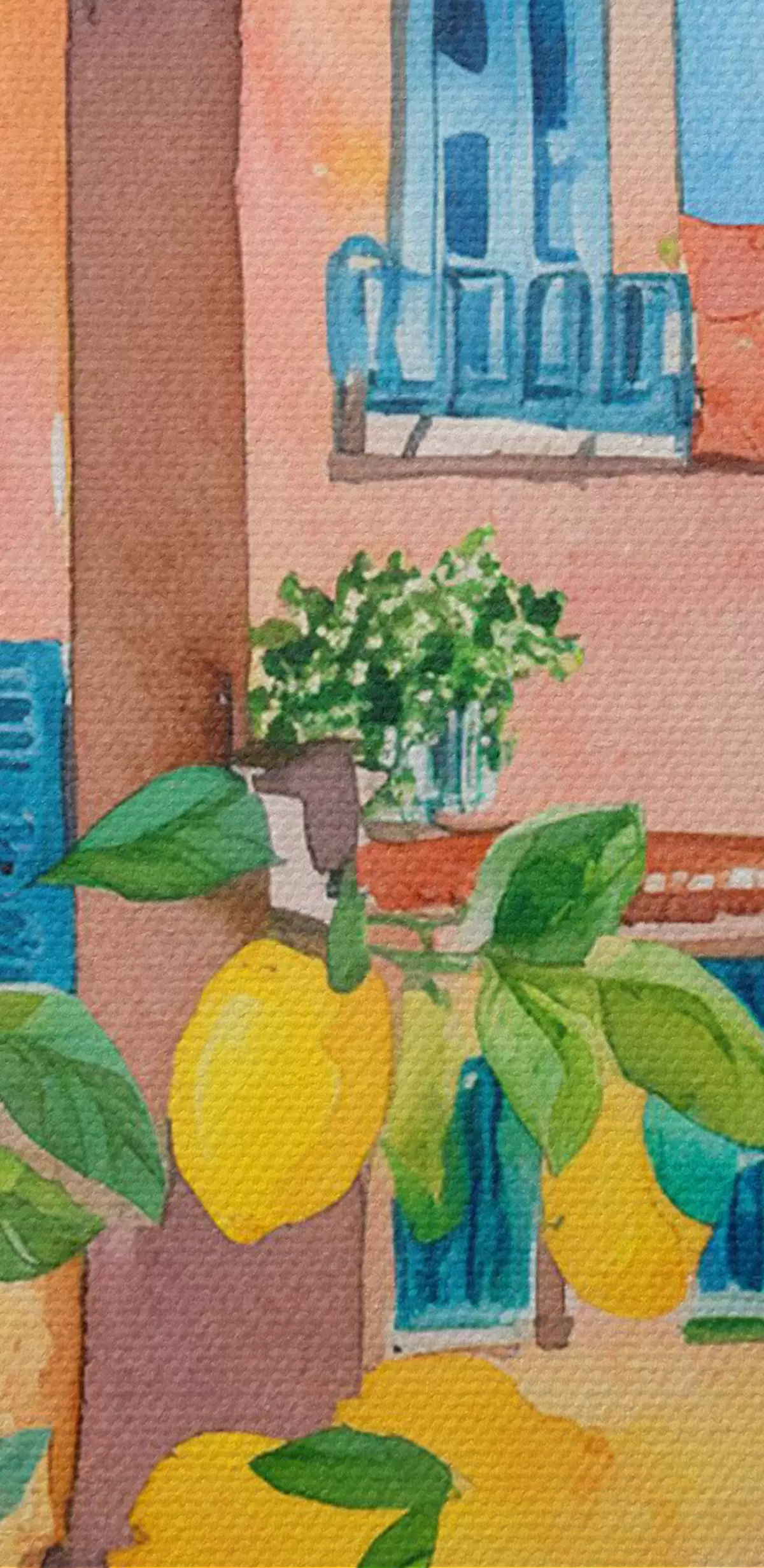 Vászonkép Olasz város építészet, tenger partján, nyár, akvarell, citromfa Nr s38395