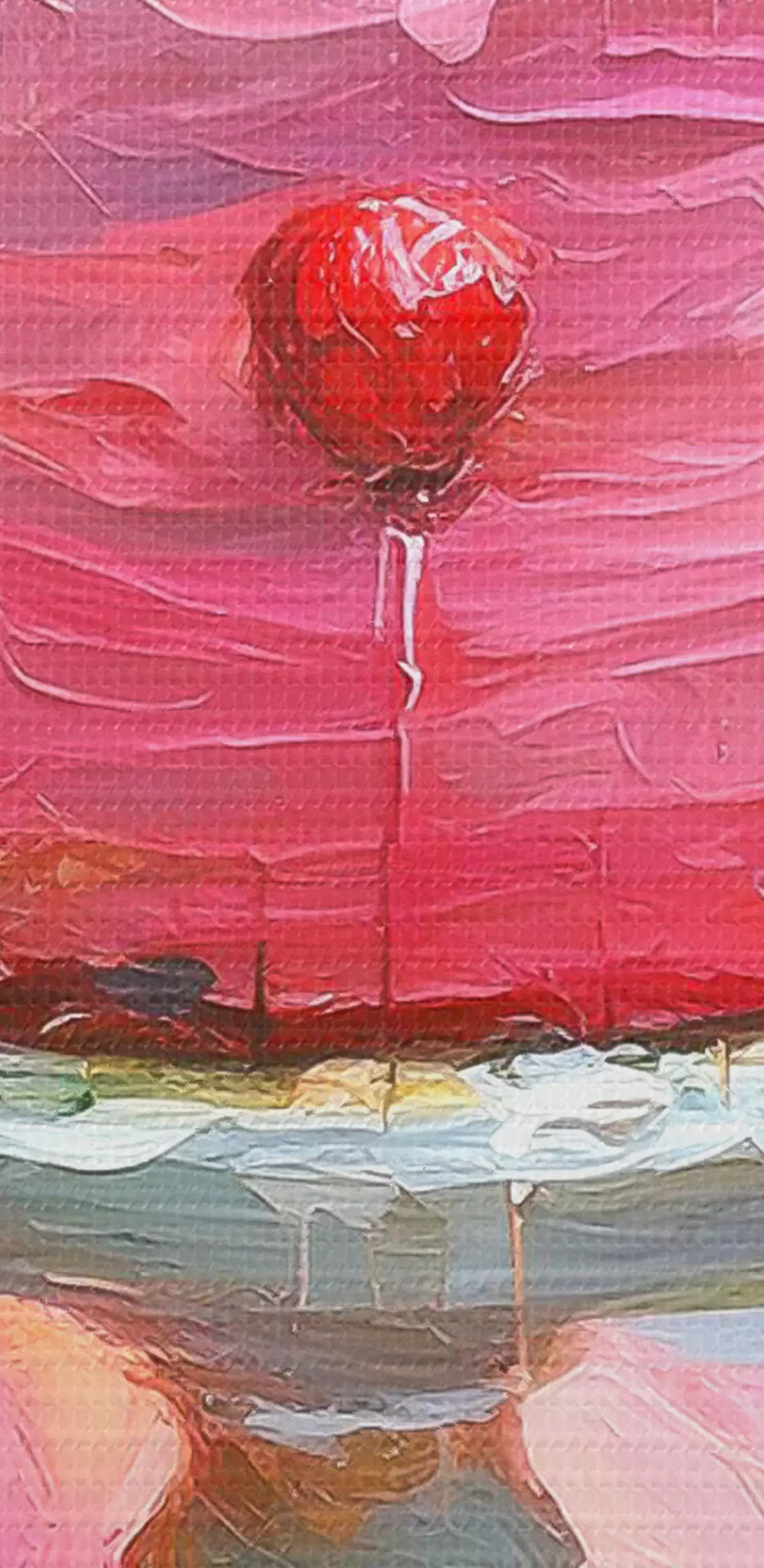 Vászonkép Epertorta krémmel, olajfestékkel, nagy ecsetvonásokkal, nyári bogyókkal, rózsaszín színekkel Nr s38499