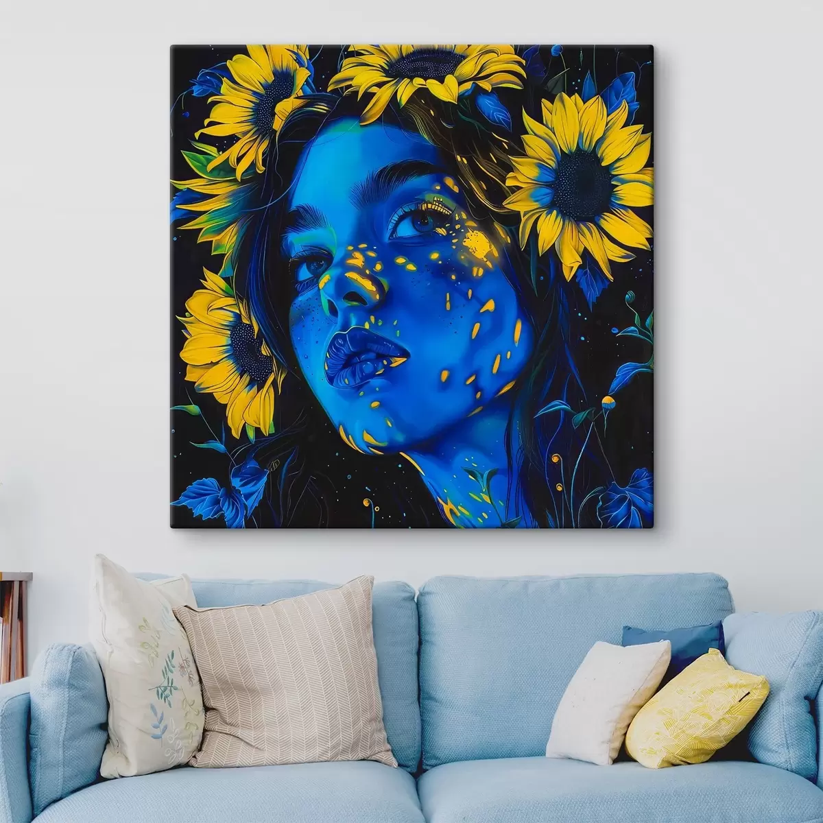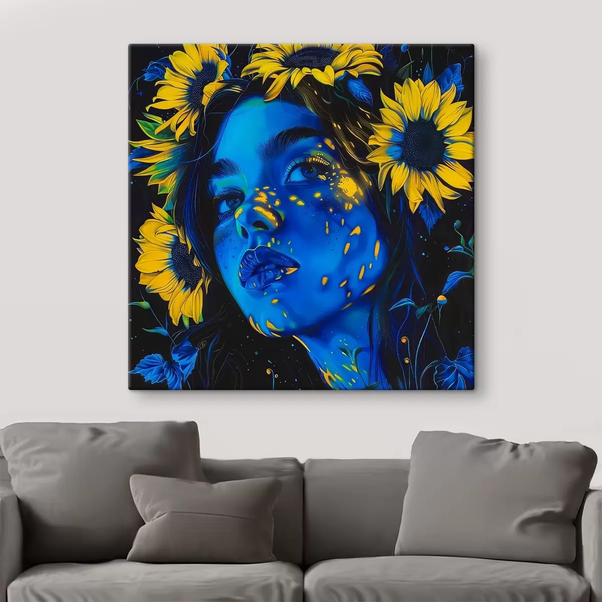 Vászonkép Egy nő napraforgóval a hajában Nr s38504