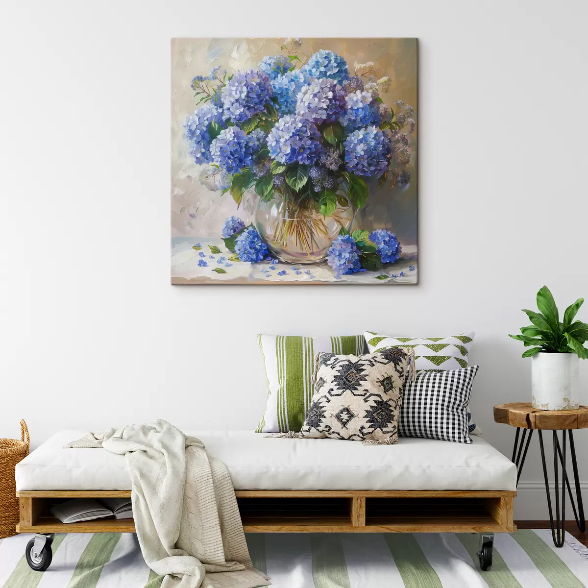 Vászonkép Kék hortenzia az asztalon Nr s38709