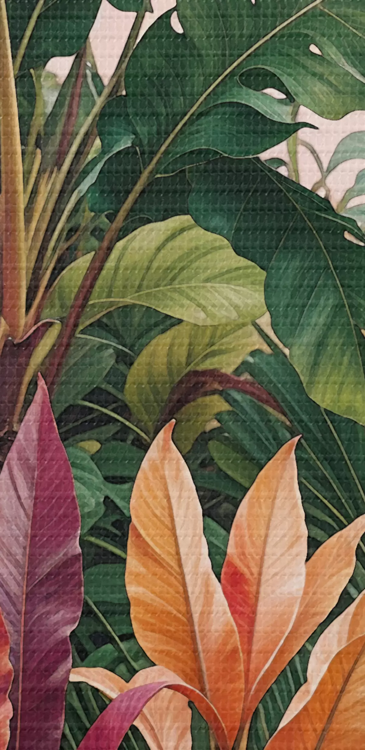 Vászonkép Buja, trópusi dzsungel élénkzöld levelekkel, pálmalevelekkel és színes virágokkal Nr s38817