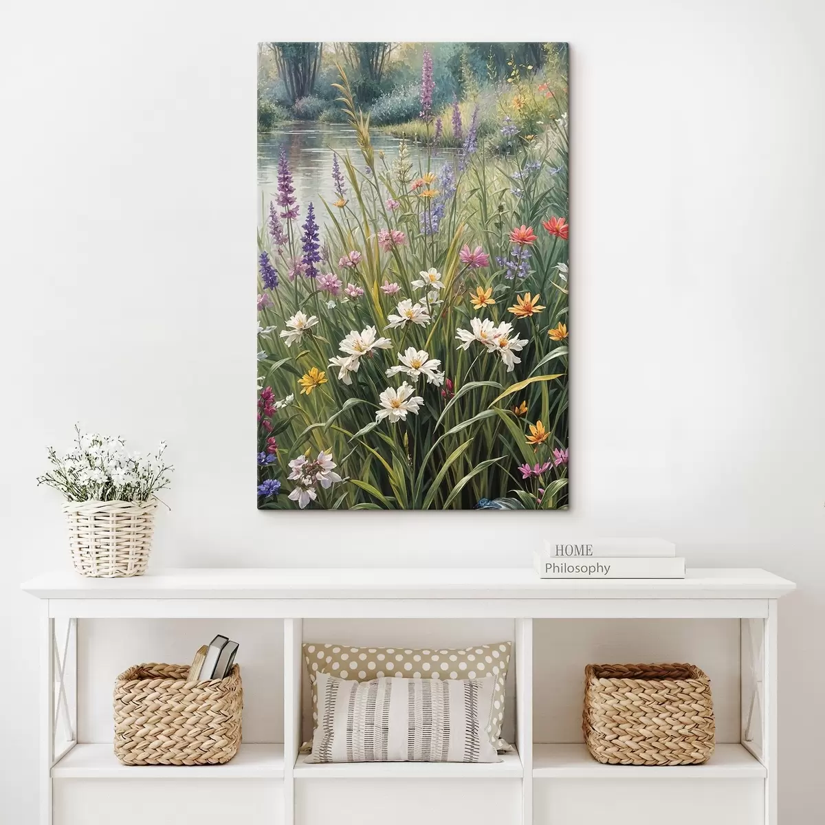 Vászonkép Vadvirágok és magas füvek. Az általános jelenet élénk, természetes tájat ábrázol Nr s38829