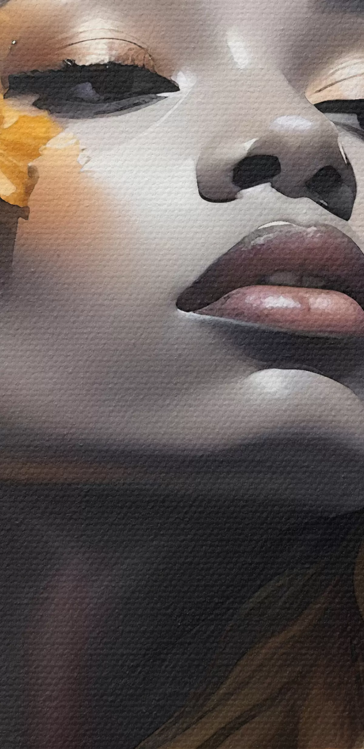 Vászonkép Fiatal nő portréja, sárga őszi levelekkel körülvéve, sötét háttér előtt Nr s38834