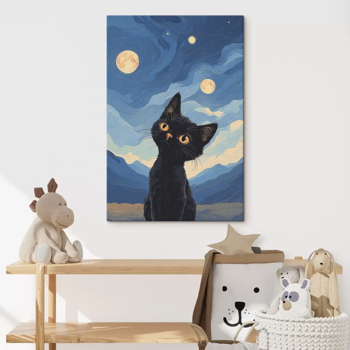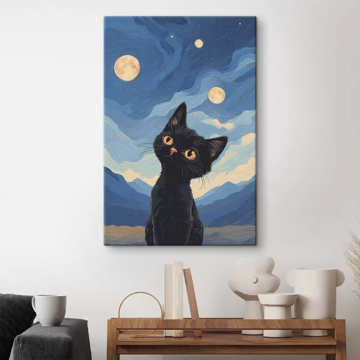 Vászonkép Kíváncsi macska a csillagos ég alatt Nr s38860