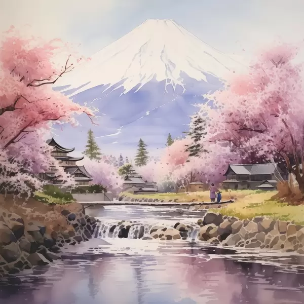 Vászonkép Cseresznyevirágzás a Fudzsi-hegy folyójánál Nr s38948
