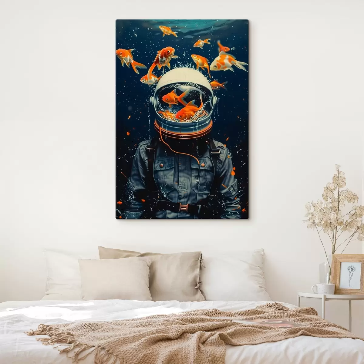 Vászonkép Űrhajós úszik játékos halakkal Nr s39041