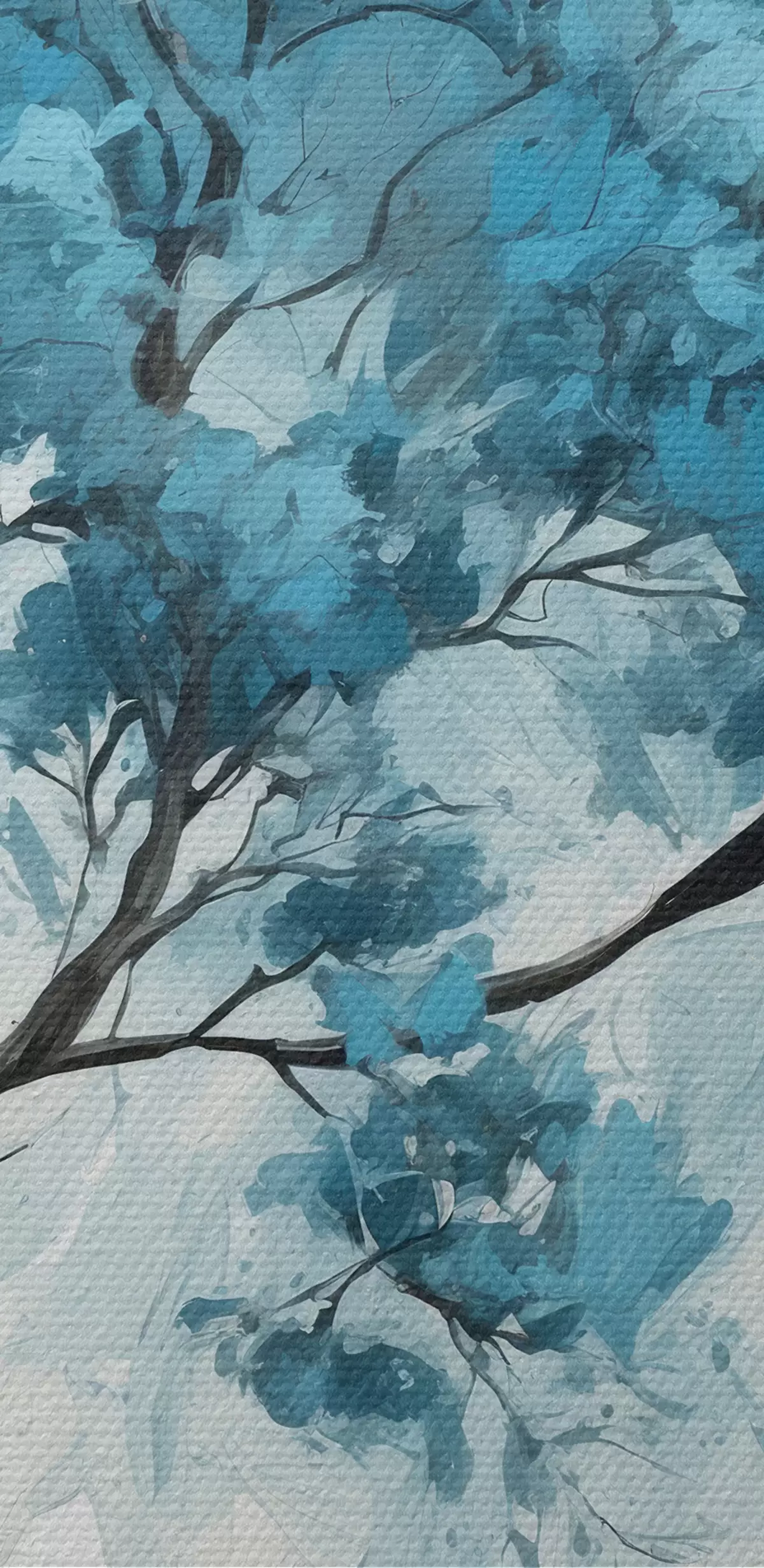 Vászonkép Fa fehér alapon kék levelekkel Nr s39153