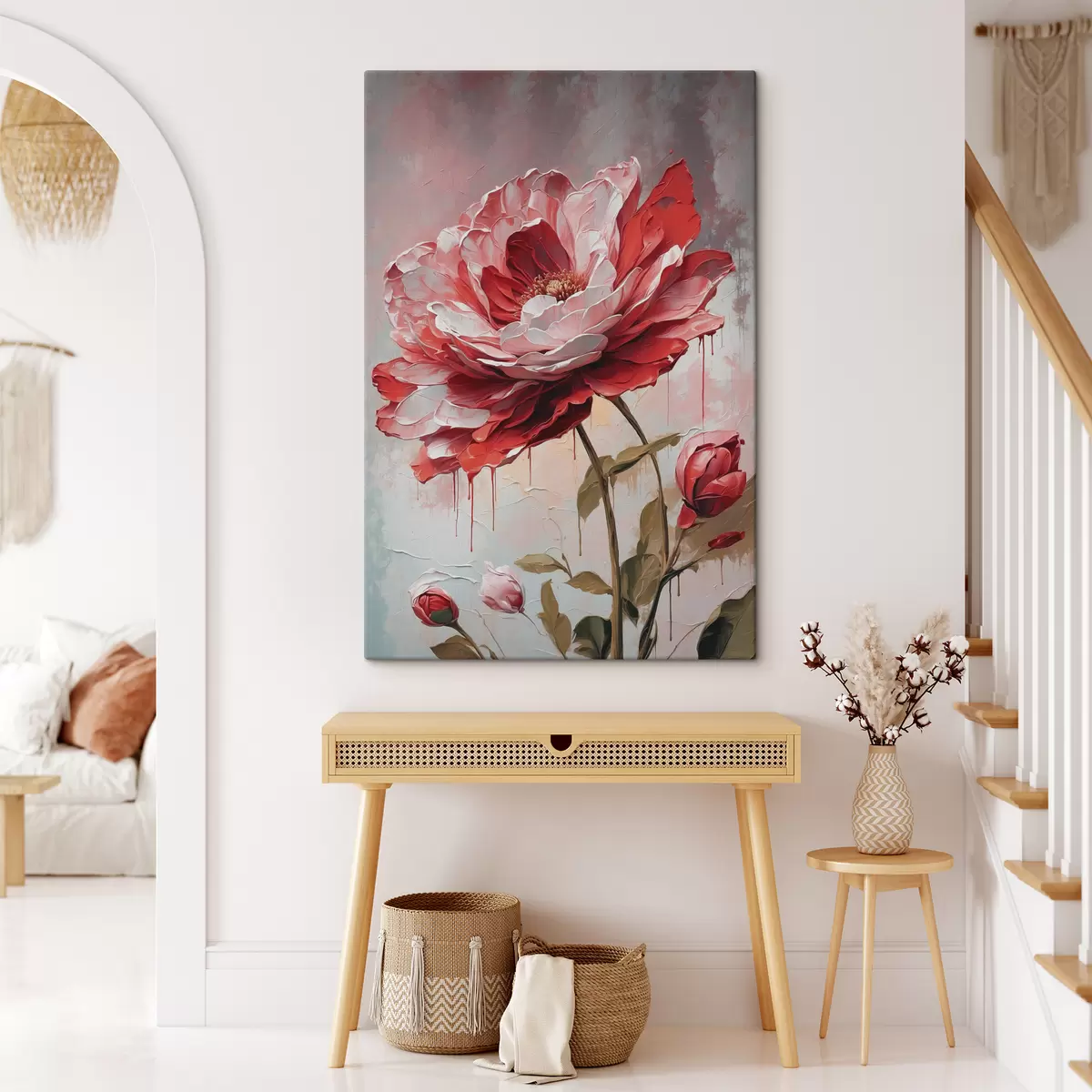 Vászonkép Piros virág fehér-szürke alapon Nr s39173