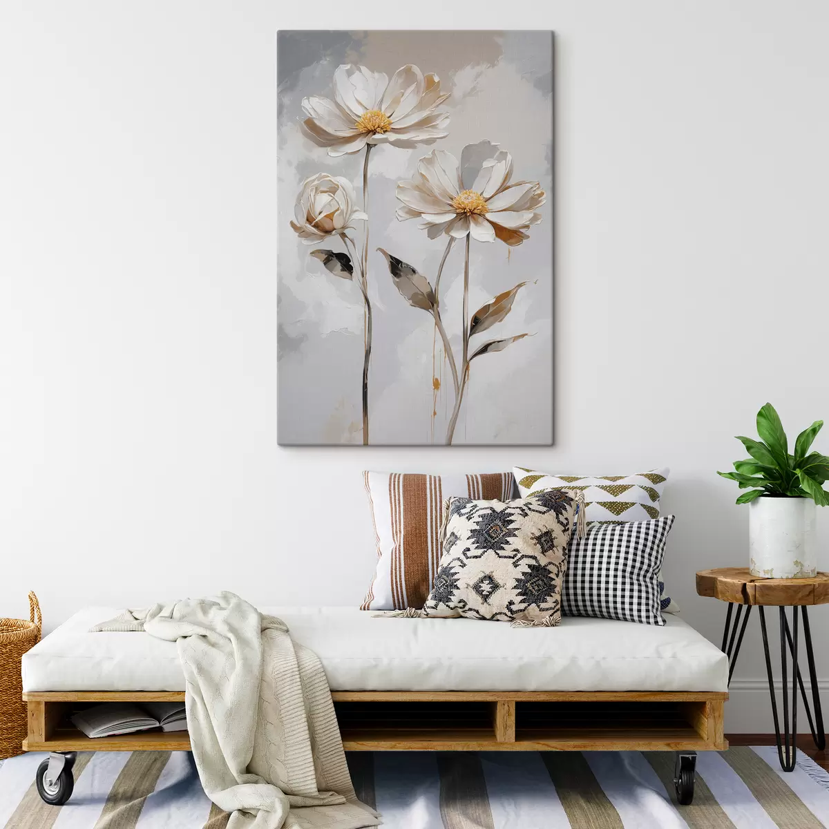 Vászonkép Fehér virágok fehér-szürke alapon Nr s39174