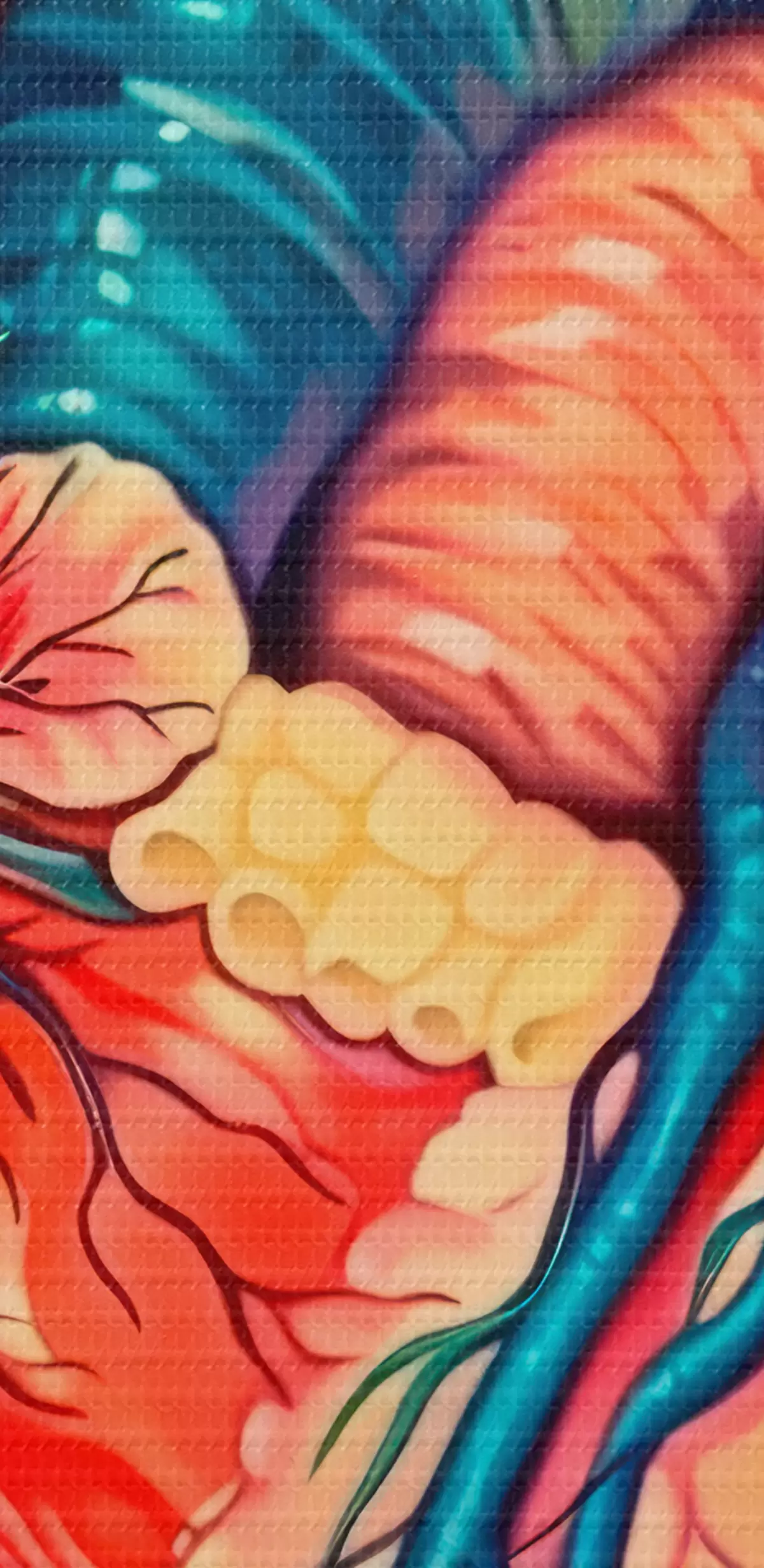Ahhoz, hogy a vásznat a feszítőrúdra feszítsük anélkül, hogy a kép megsérülne, tükrözött képet használunk.