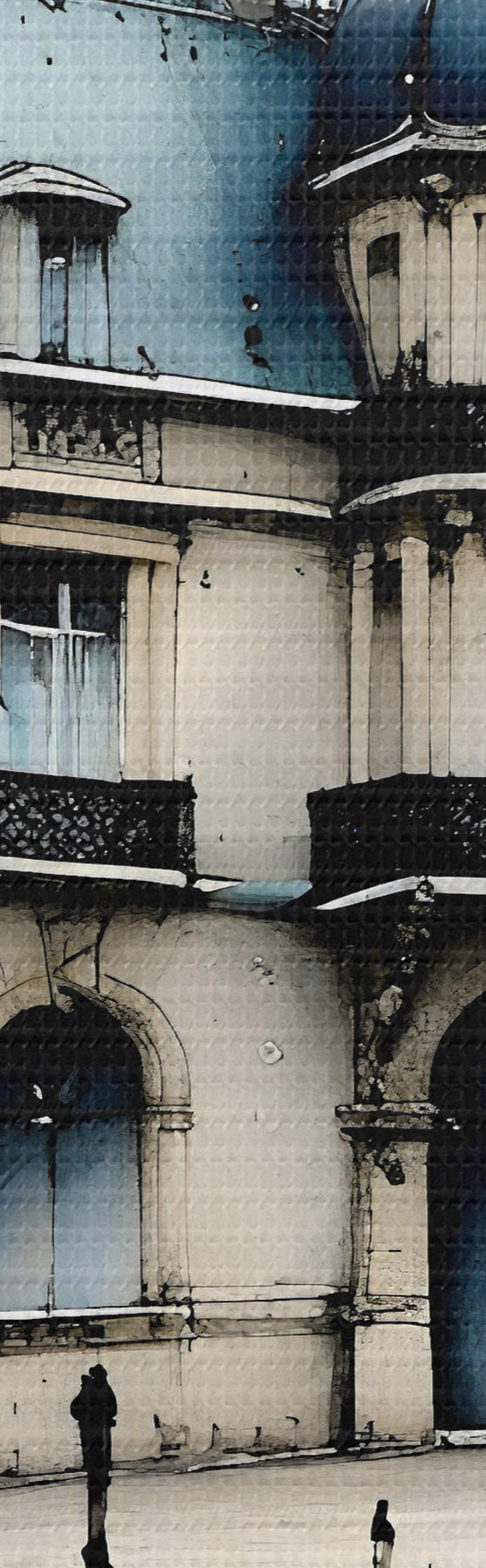 Ahhoz, hogy a vásznat a feszítőrúdra feszítsük anélkül, hogy a kép megsérülne, tükrözött képet használunk.