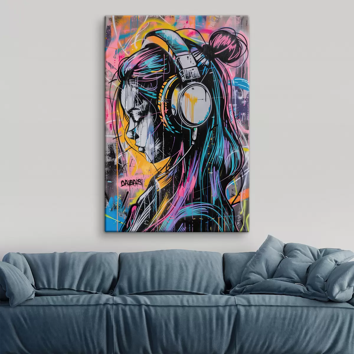 Vászonkép Nő a fejhallgató graffiti stílusban Nr s39443