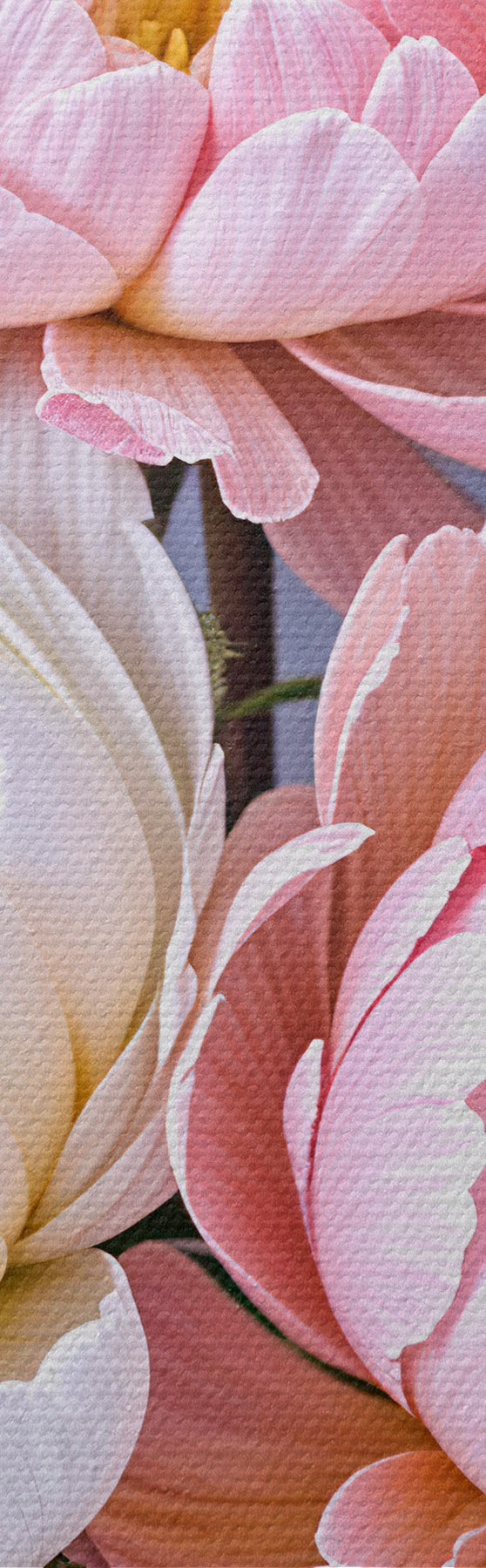 Háromféle anyagtípus rendelhető: Economic Canvas - sűrű és tartós anyag digitális nyomtatáshoz, a festővászonnal megegyező, vízálló felületű, a részletek valósághű reprodukciójával, közepes szemcsézettségű anyag. Premium Canvas - a textúra hasonlít a festővászonra (egymásba fonódó apró szálak). Puha, részletgazdag képreprodukció matt felületen. Eco-Premium - kiváló minőségű 100% pamutszövet. A természetes pamutszálaknak köszönhetően az anyag tartós és kopásálló. Kiváló színvisszaadás és részletesség.
