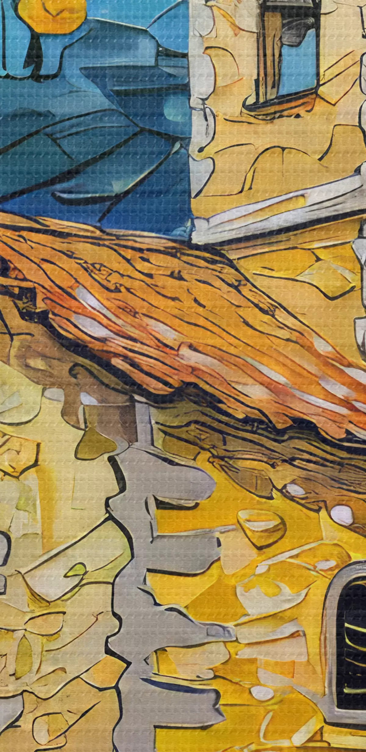 Ahhoz, hogy a vásznat a feszítőrúdra feszítsük anélkül, hogy a kép megsérülne, tükrözött képet használunk.
