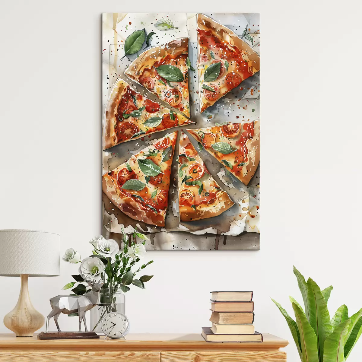 Vászonkép Ízletes olasz pizza, akvarell ételművészet, margarita, paradicsom Nr s39703
