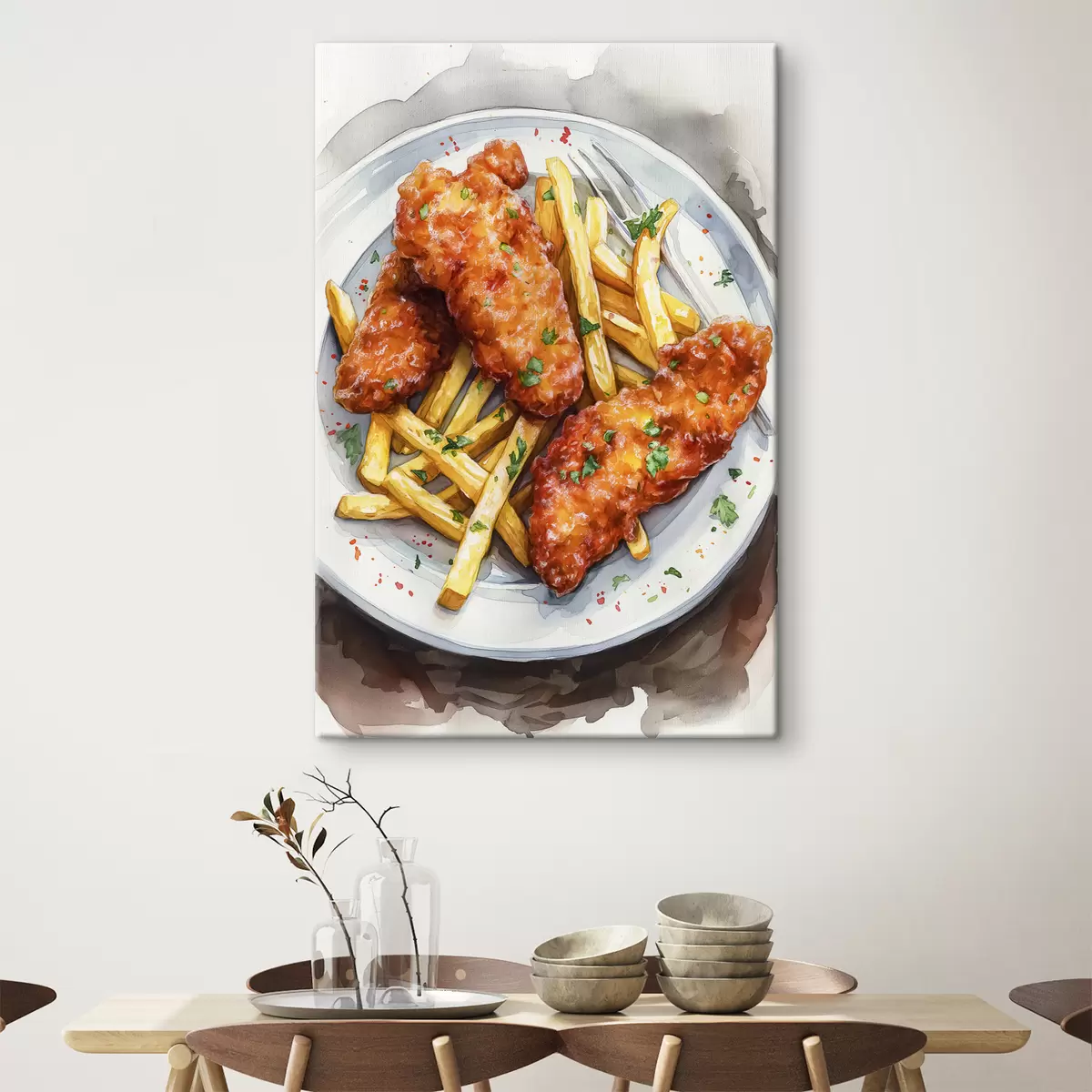 Vászonkép Akvarell ételművészet, sült csirkével sült krumpli, finom Nr s39708