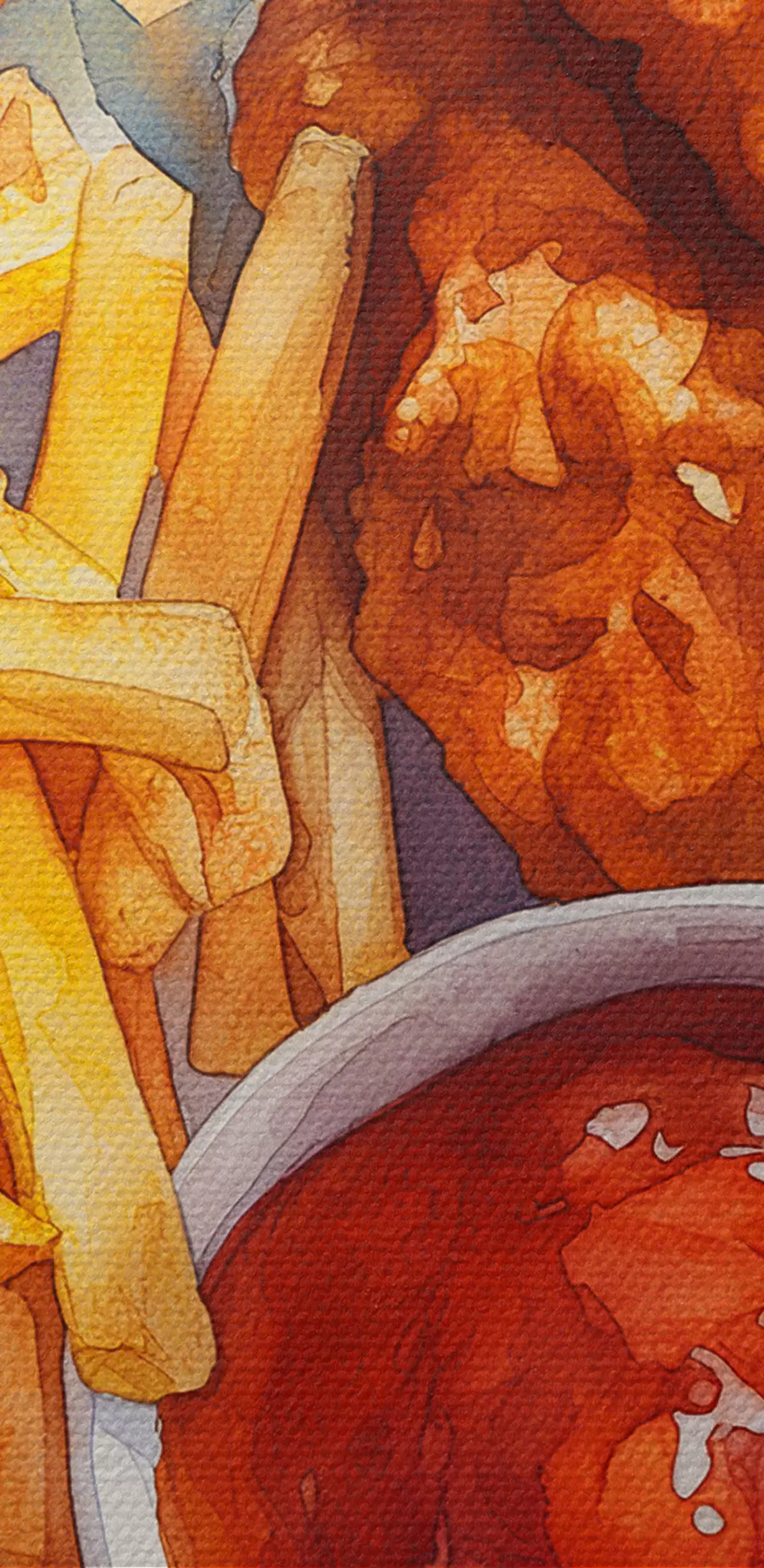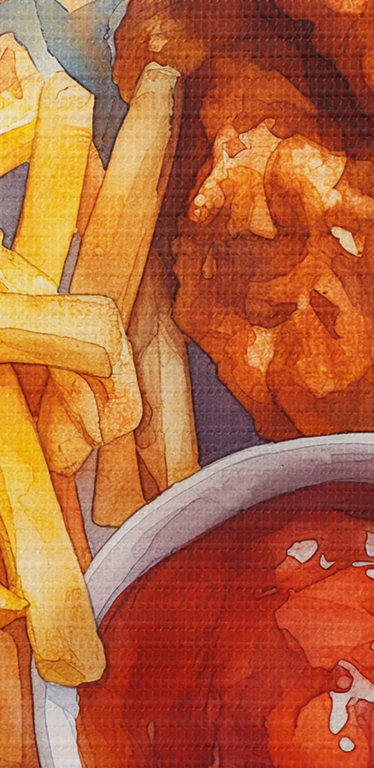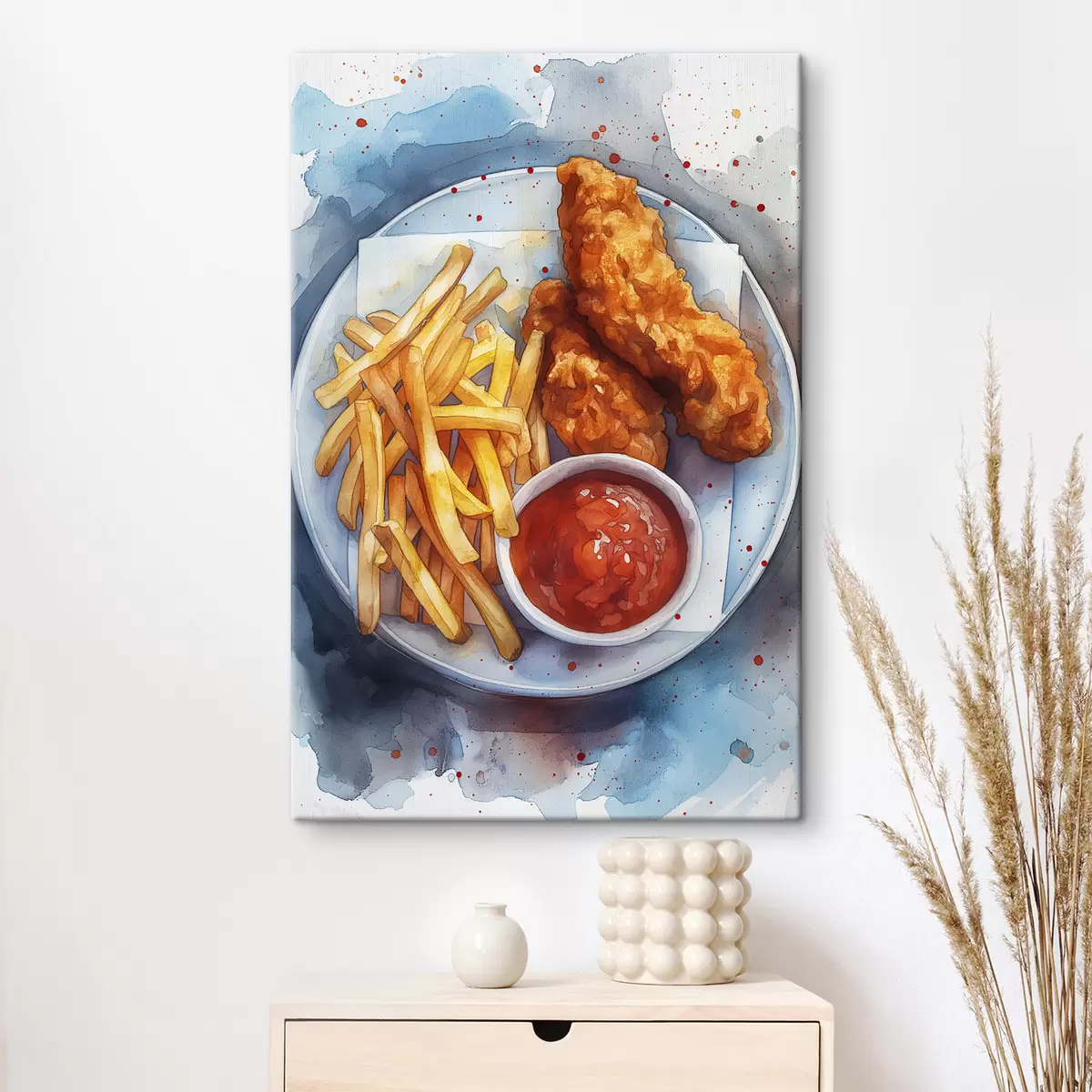 Vászonkép Akvarell street food, sült krumpli sült csirkével, finom Nr s39709