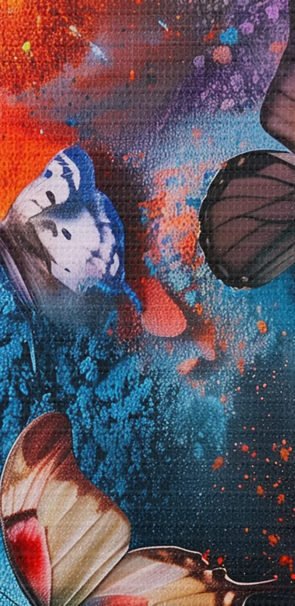 Ahhoz, hogy a vásznat a feszítőrúdra feszítsük anélkül, hogy a kép megsérülne, tükrözött képet használunk.