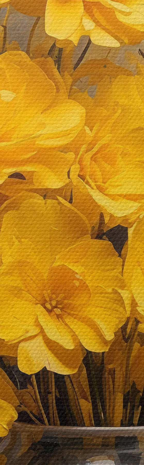 Vászonkép Sárga virágok vázában, tarka akril alapon Nr s39854