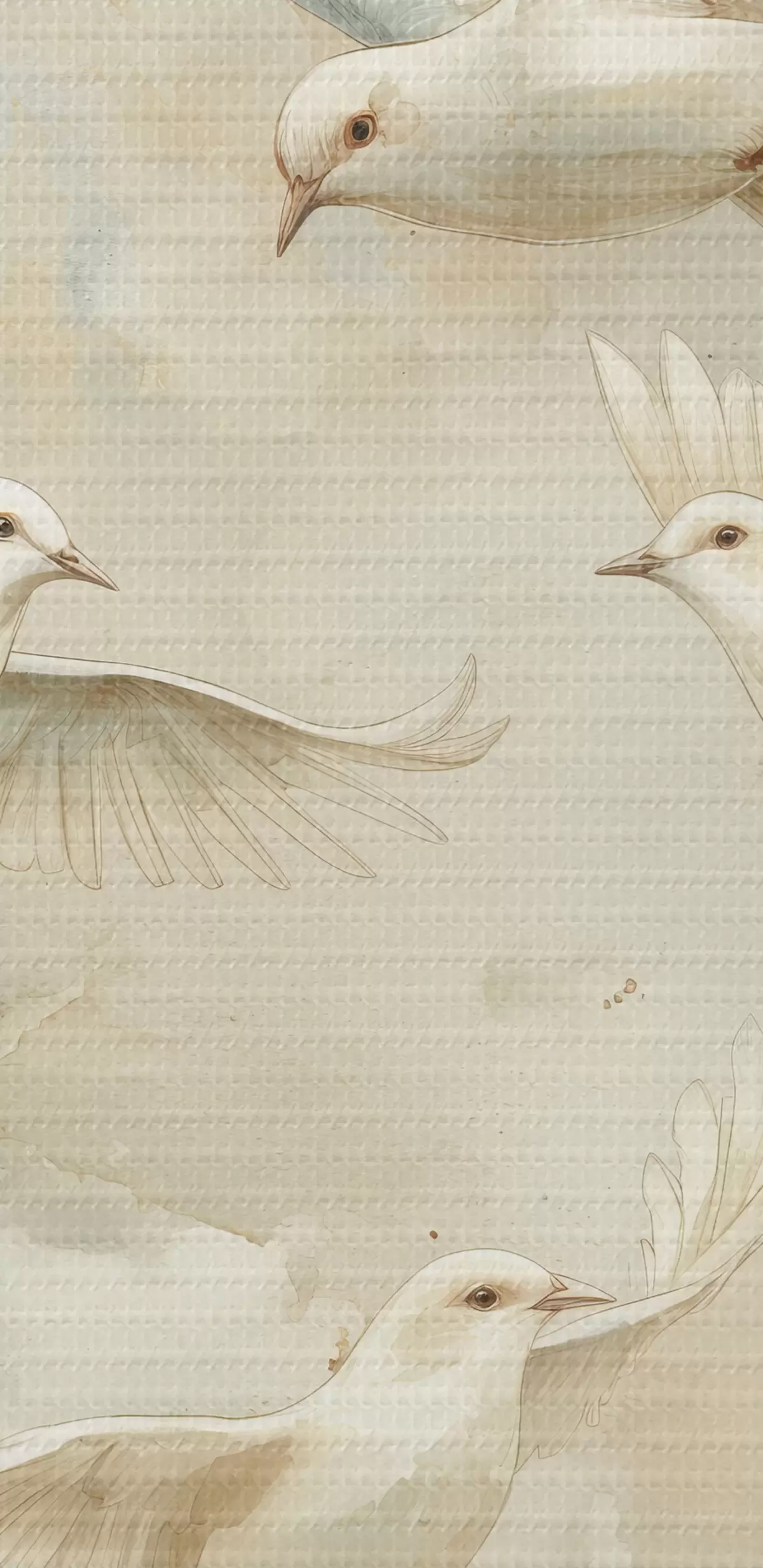 Vászonkép Akvarell repülő madarak, lágy bézs és fehér színek, galambok Nr s39976