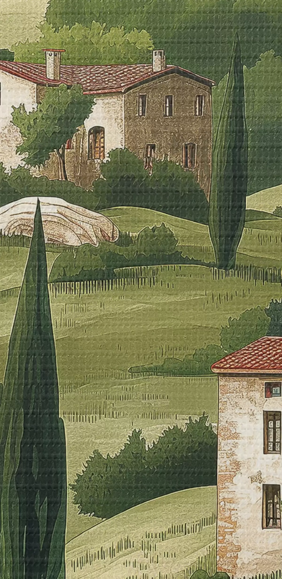 Vászonkép Táj vintage házakkal, pasztell zöld színekkel, akril rajzzal, rusztikus Nr s40080