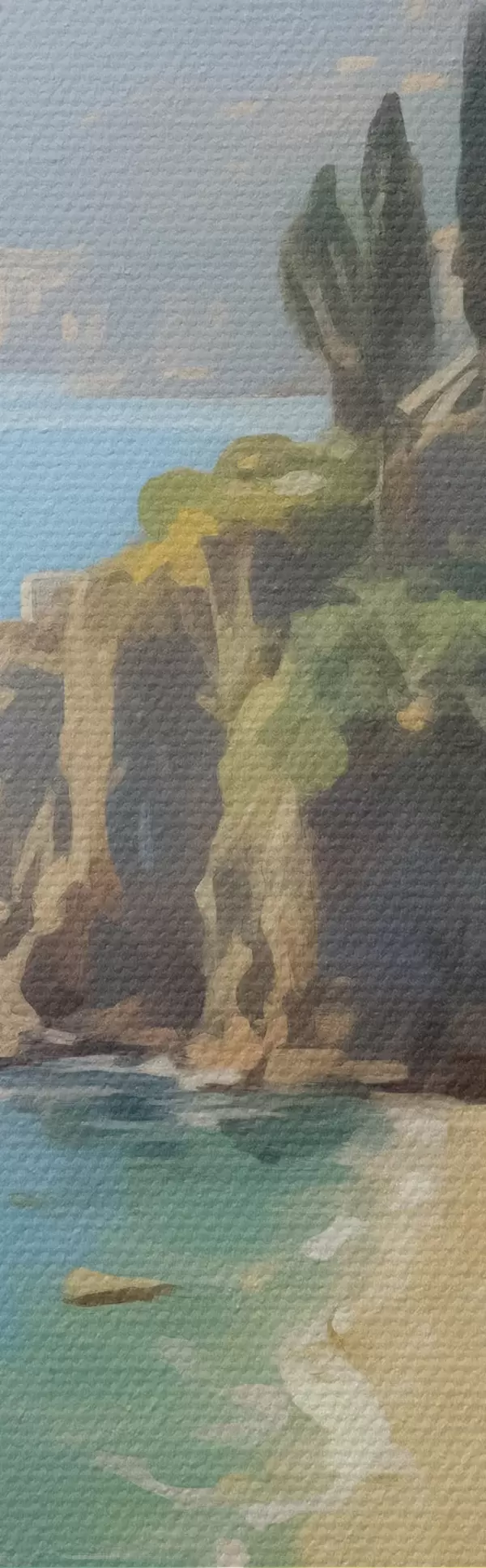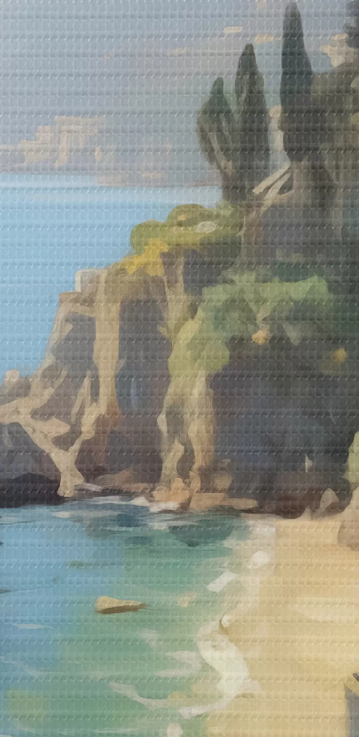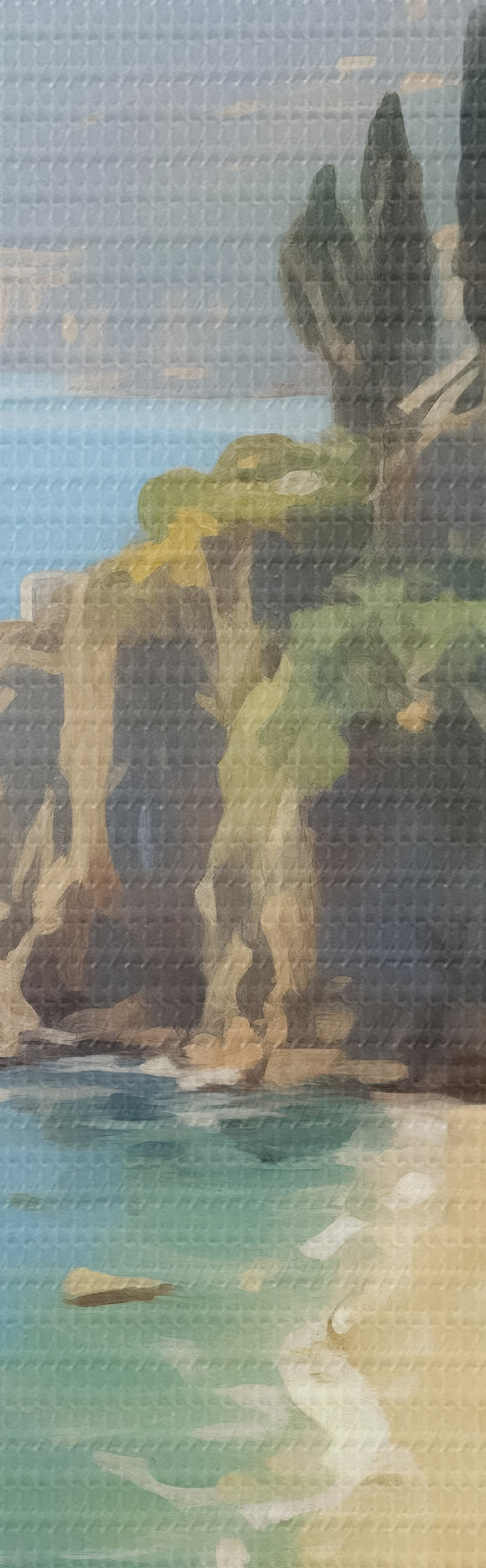 Vászonkép Kilátás az öbölre, a hegyekre Olaszországban a szálloda olajfestmény-utánzatából Nr s40088