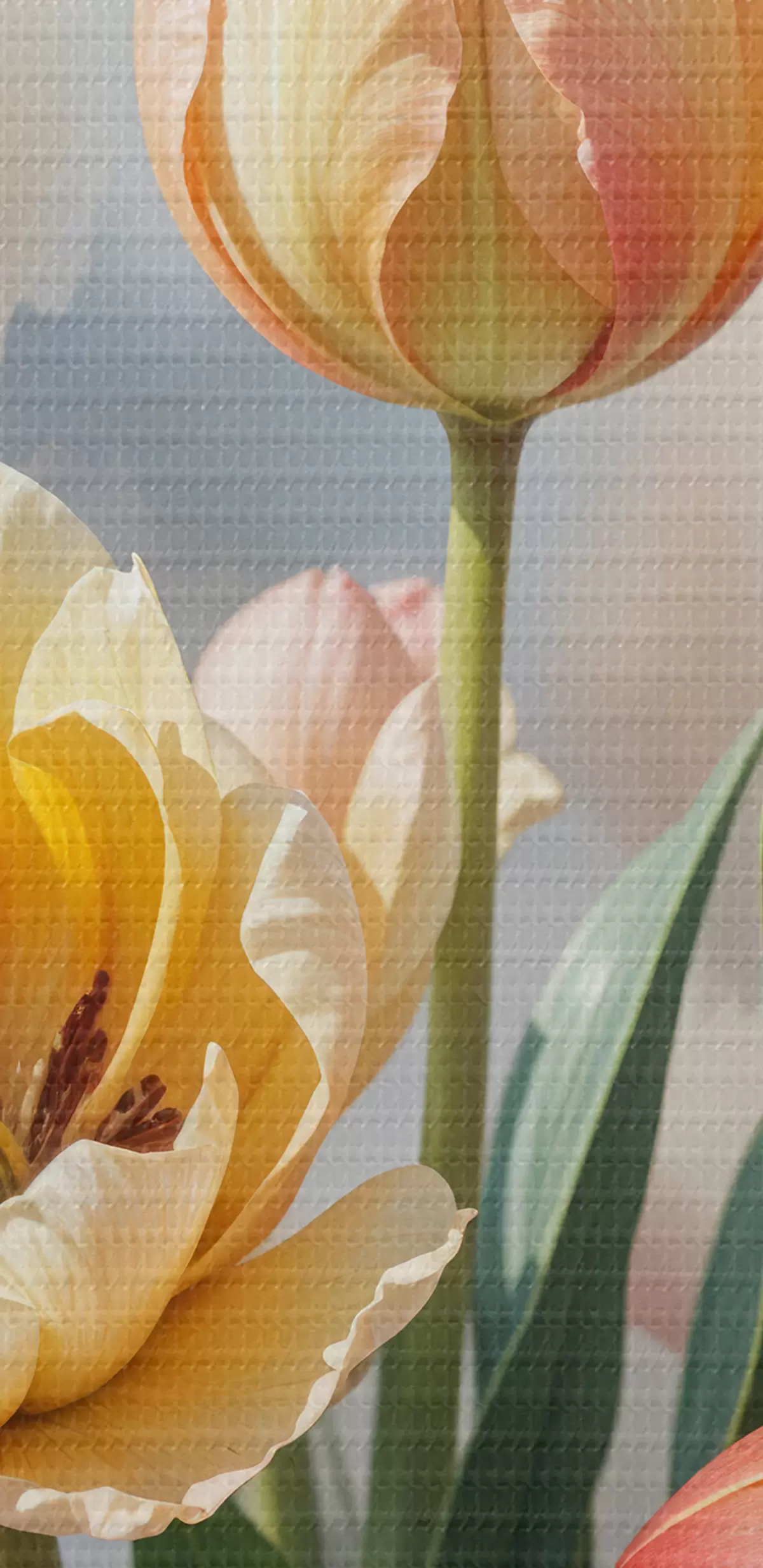 Vászonkép Színes tulipánok a vörös, narancs és sárga különböző árnyalataiban világos háttér előtt Nr s40167