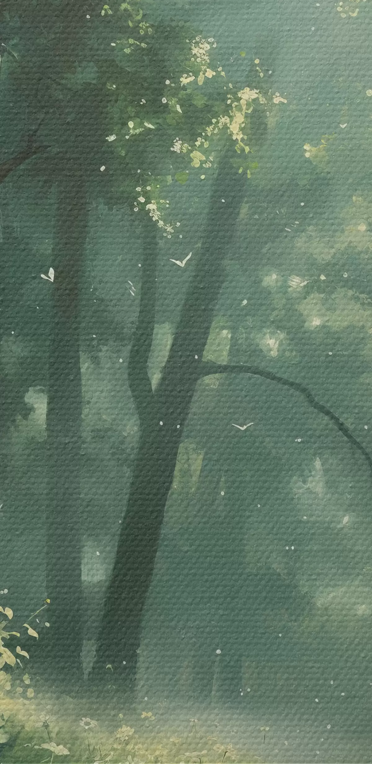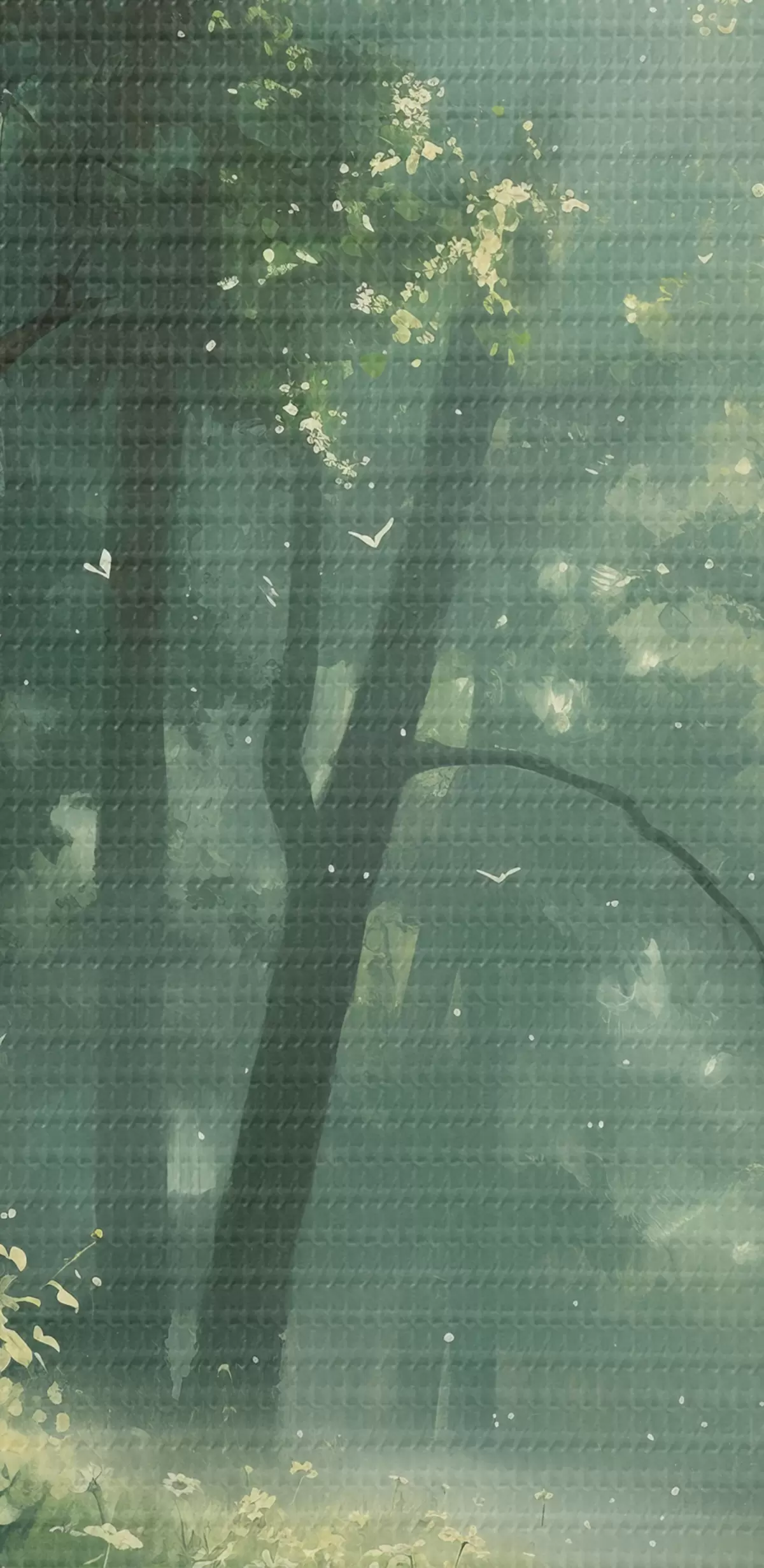 Vászonkép Sűrű erdő napfény a fákon, kamilla virágok, zöld fű, természet Nr s40224