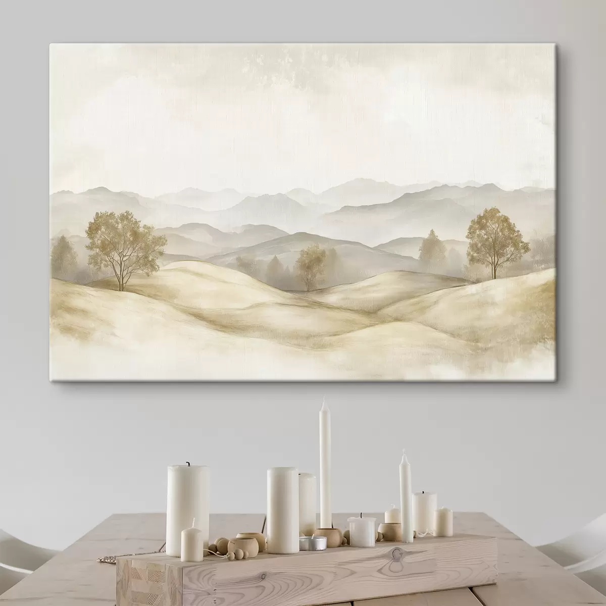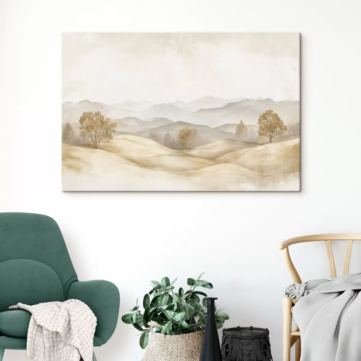 Vászonkép Természeti táj bézs színpaletta, rét, fák, akvarell rajz Nr s40231