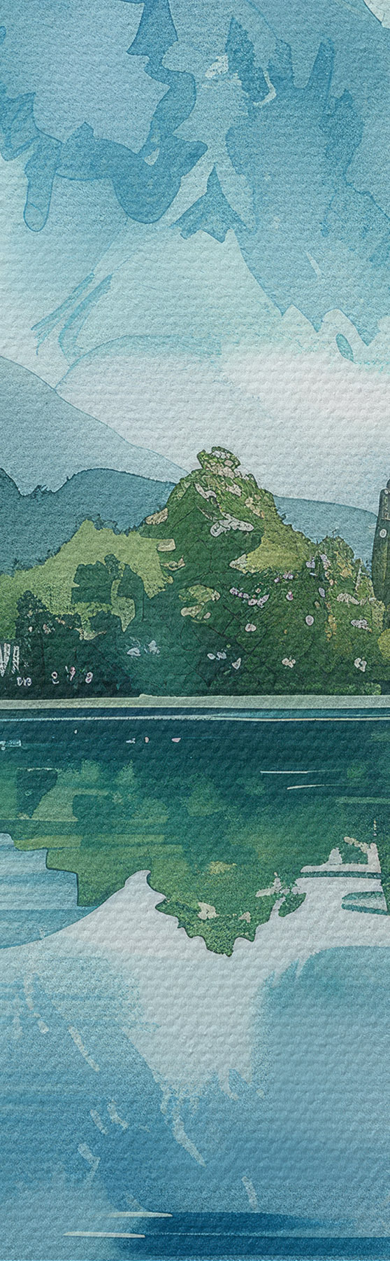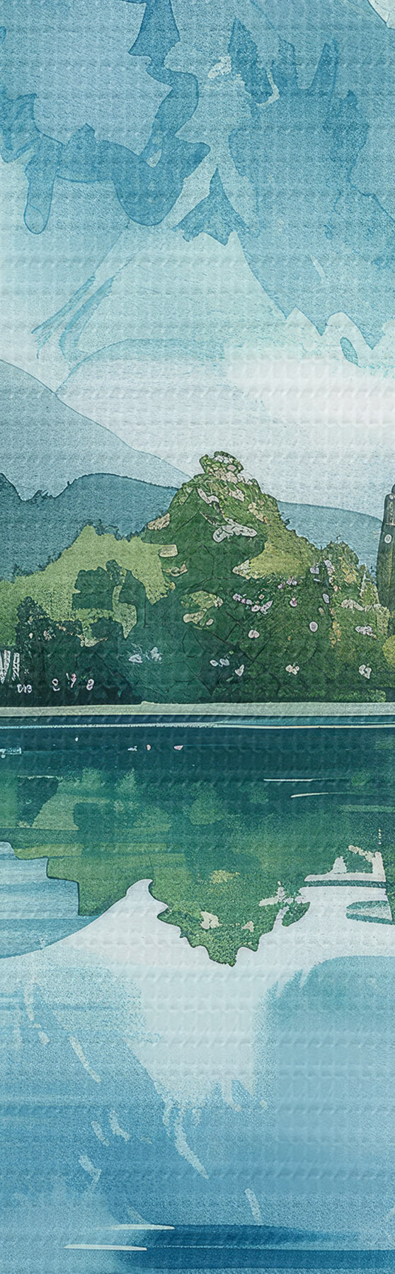 Vászonkép Vízfestmény hegyek táj, folyó, zöld és kék színek Nr s40310