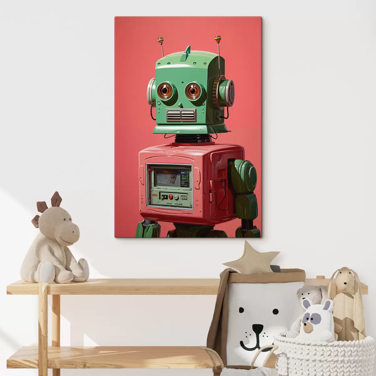 Vászonkép Android robot zöld fejjel, rózsaszín háttérrel Nr s40314