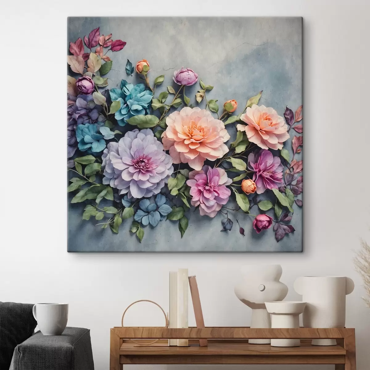 Vászonkép Virágok és levelek a kék háttér Nr s40346