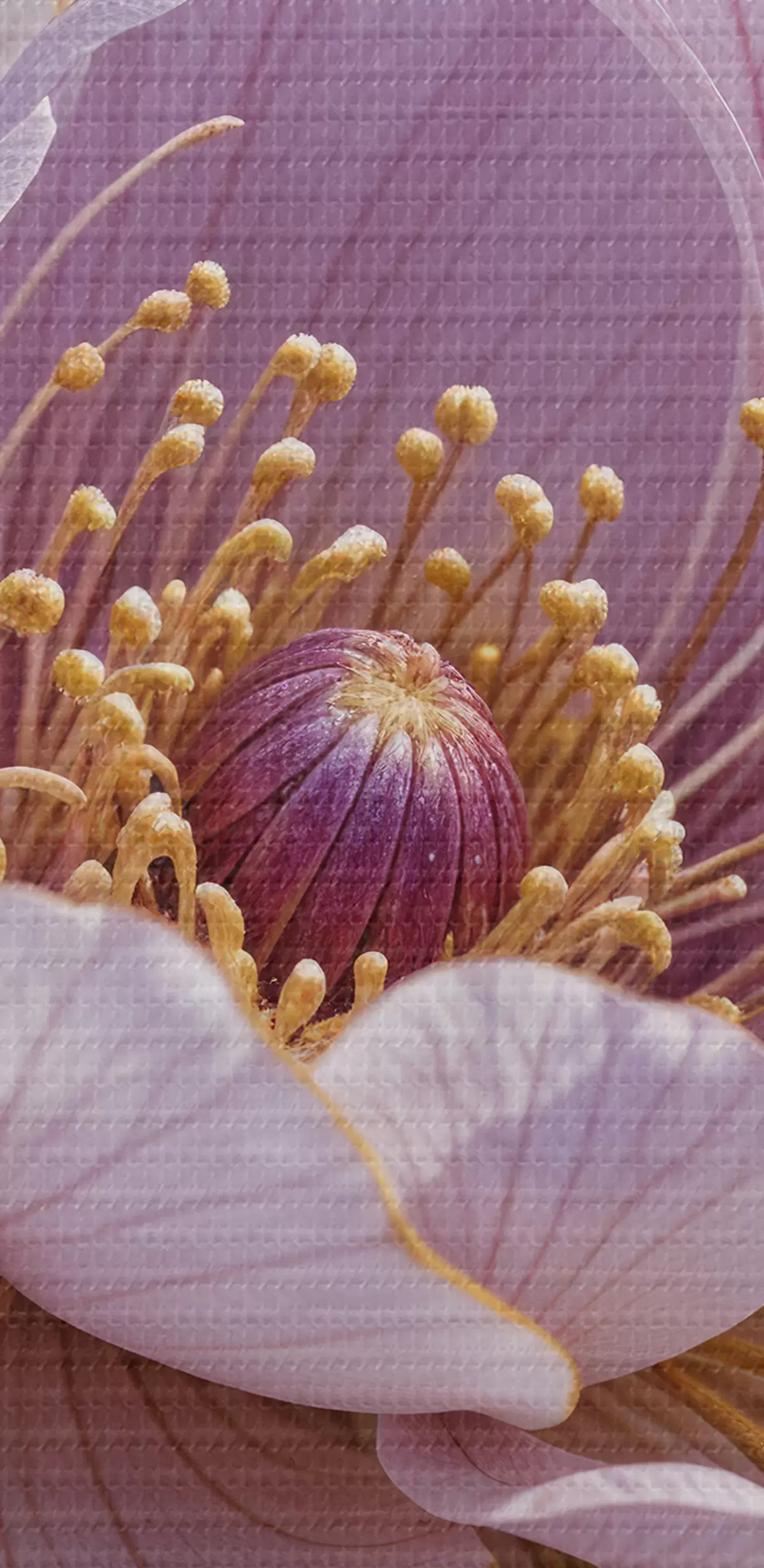 Vászonkép Közeli kép egy nagy, halvány rózsaszín bazsarózsa virágról, finom szirmokkal és élénksárga közepével Nr s40384