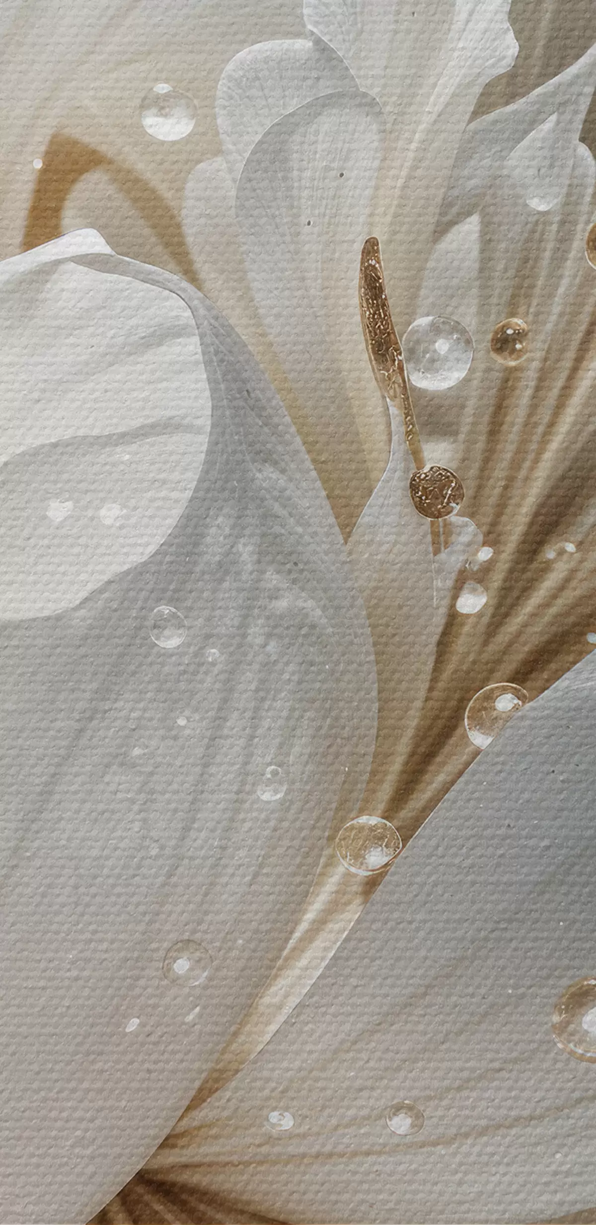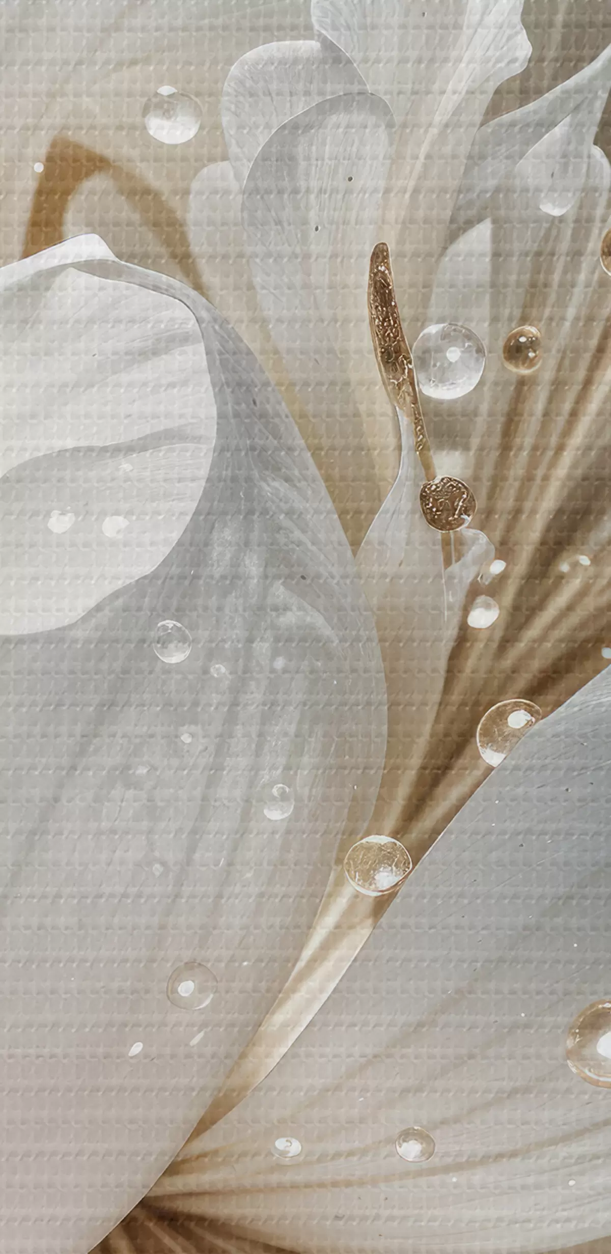 Vászonkép Közeli kép egy fehér bazsarózsa virágról, vízcseppekkel a szirmokon, elmosódott háttér előtt Nr s40539