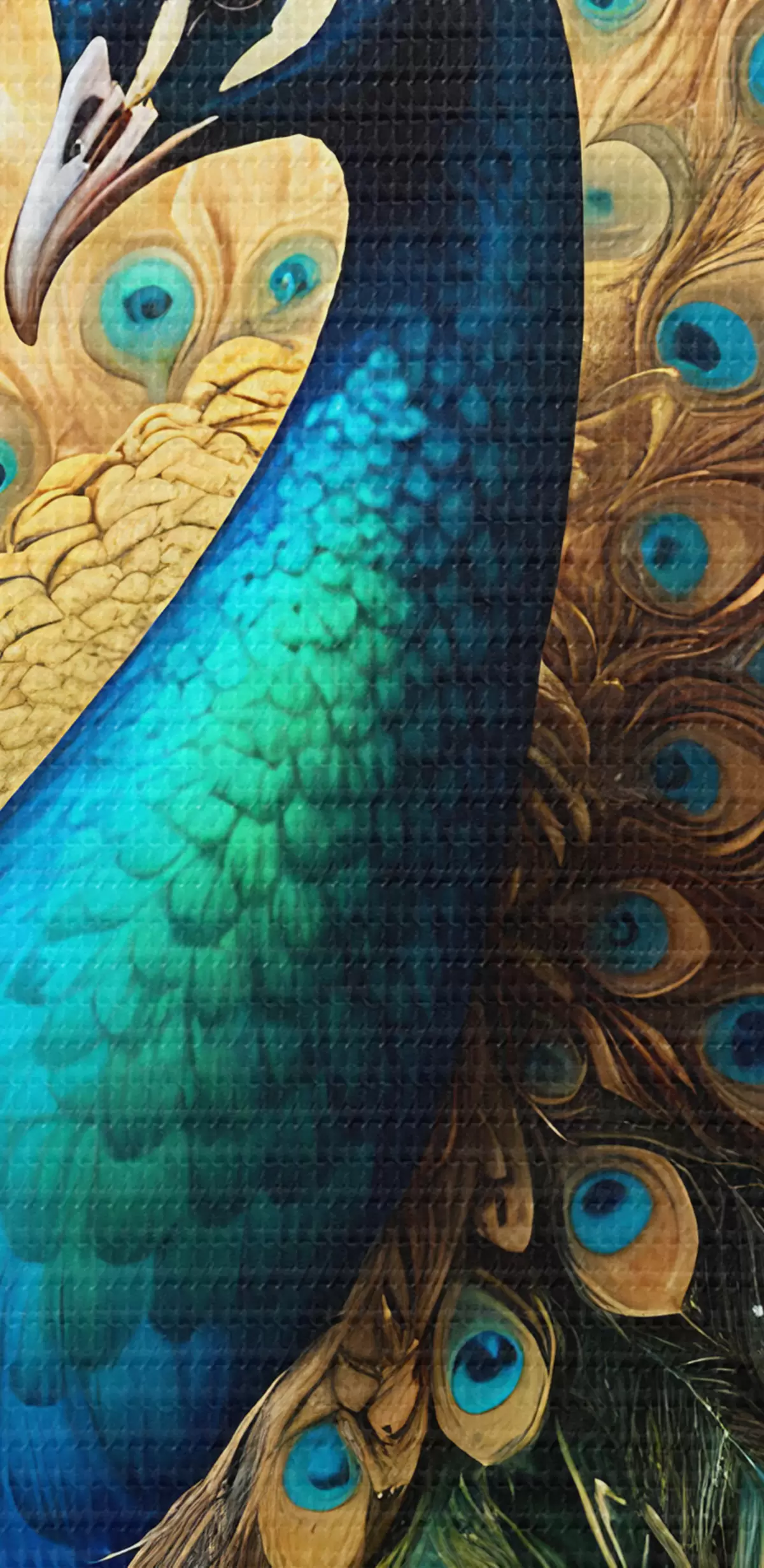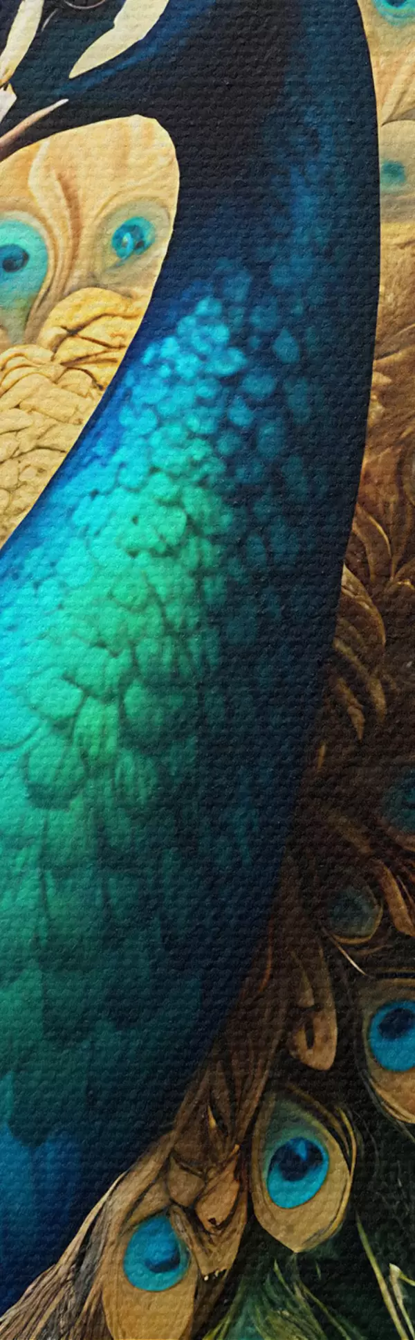 Vászonkép Élénk páva teljesen kihelyezett tollakkal, lenyűgöző kék és arany tollazatával Nr s40571