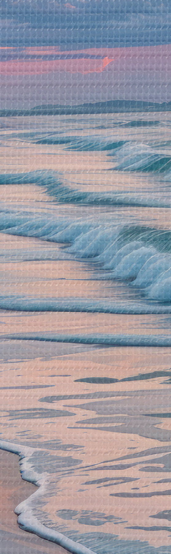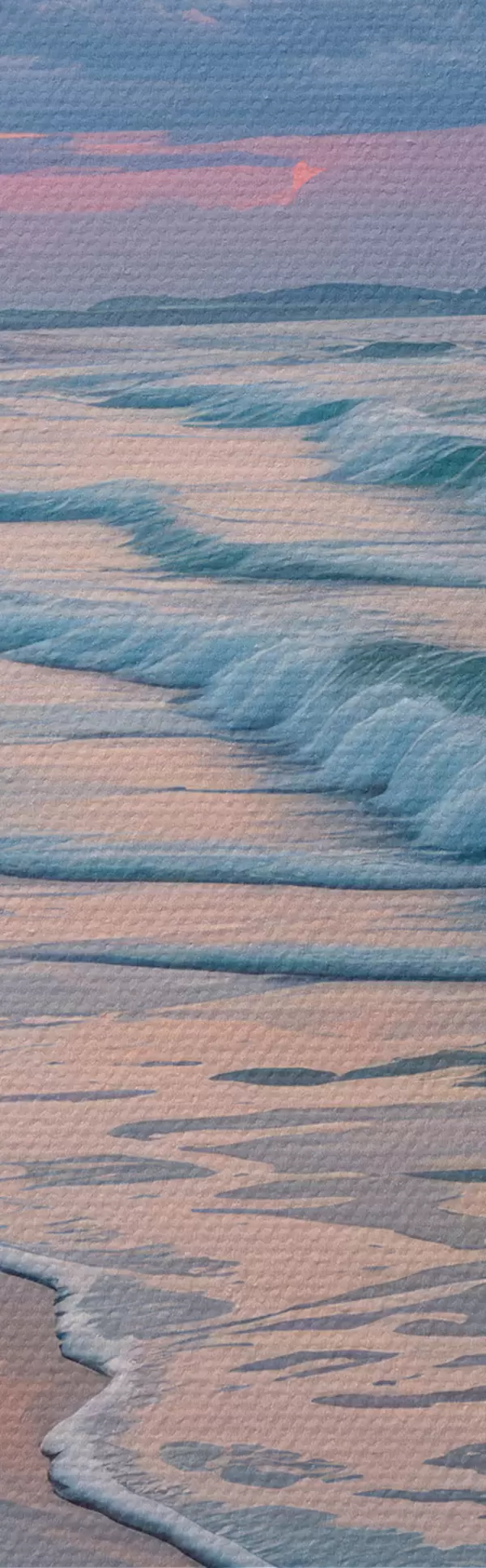 Vászonkép Nyugodt tengerparti jelenet naplementekor, a homokos parthoz csapódó szelíd hullámokkal Nr s40606