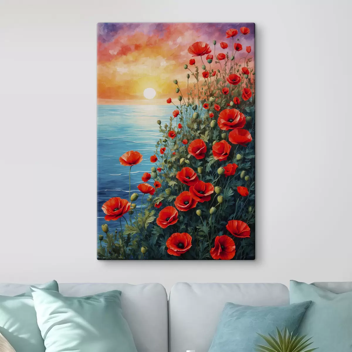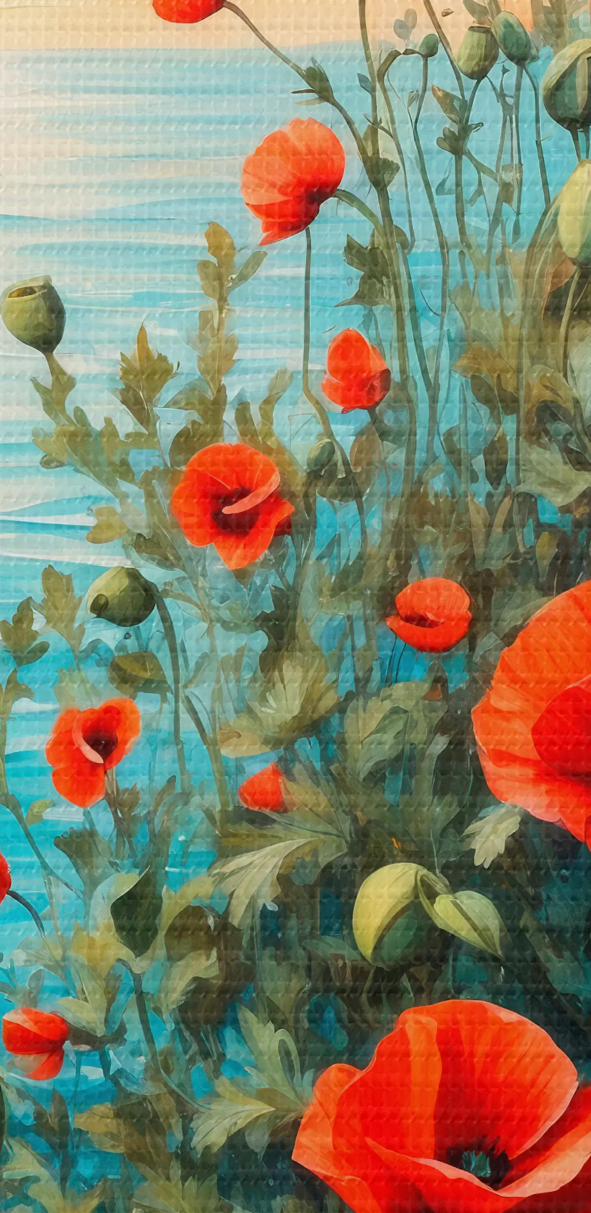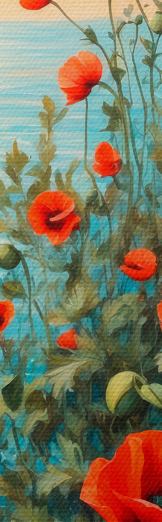 Vászonkép Virágzó pipacsok a tenger hátterében Nr s40637