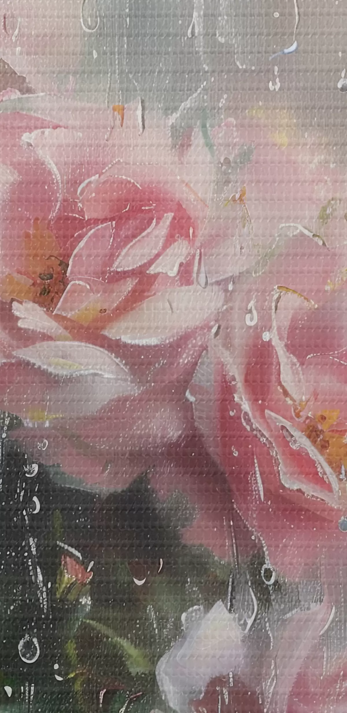 Vászonkép Egy csokor rózsaszín rózsa az ablakon kívül esős időben Nr s40656