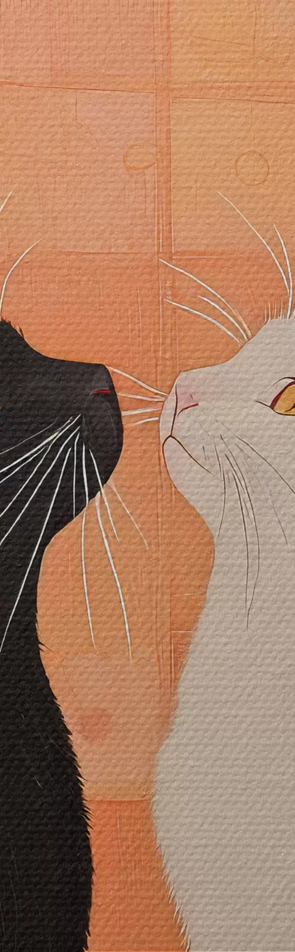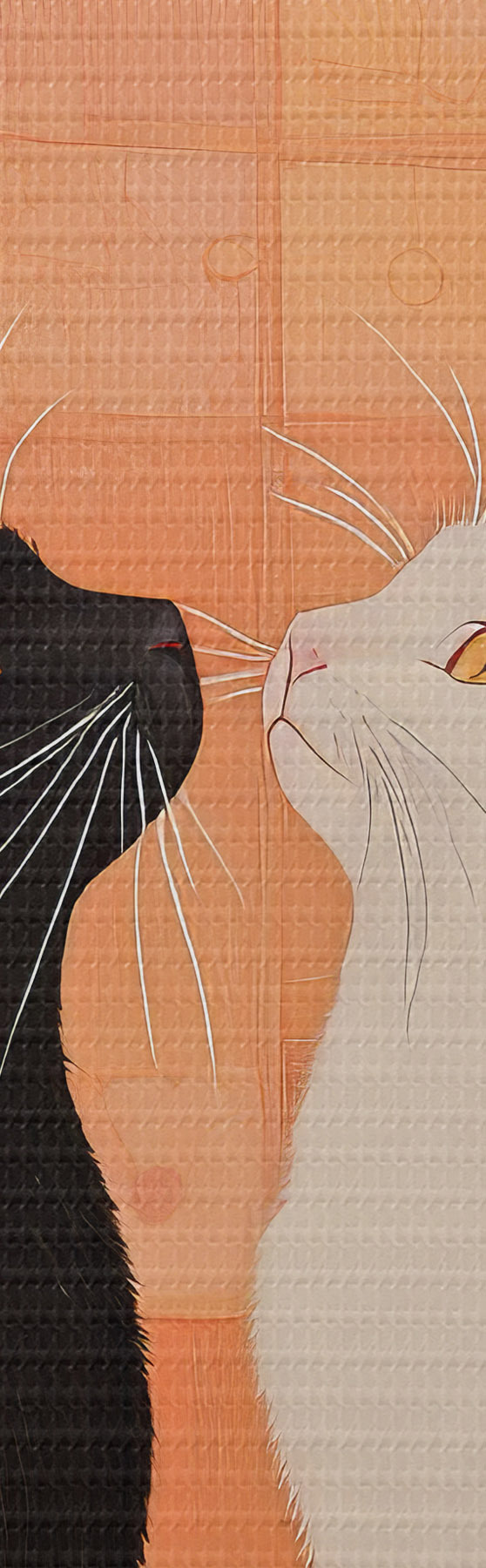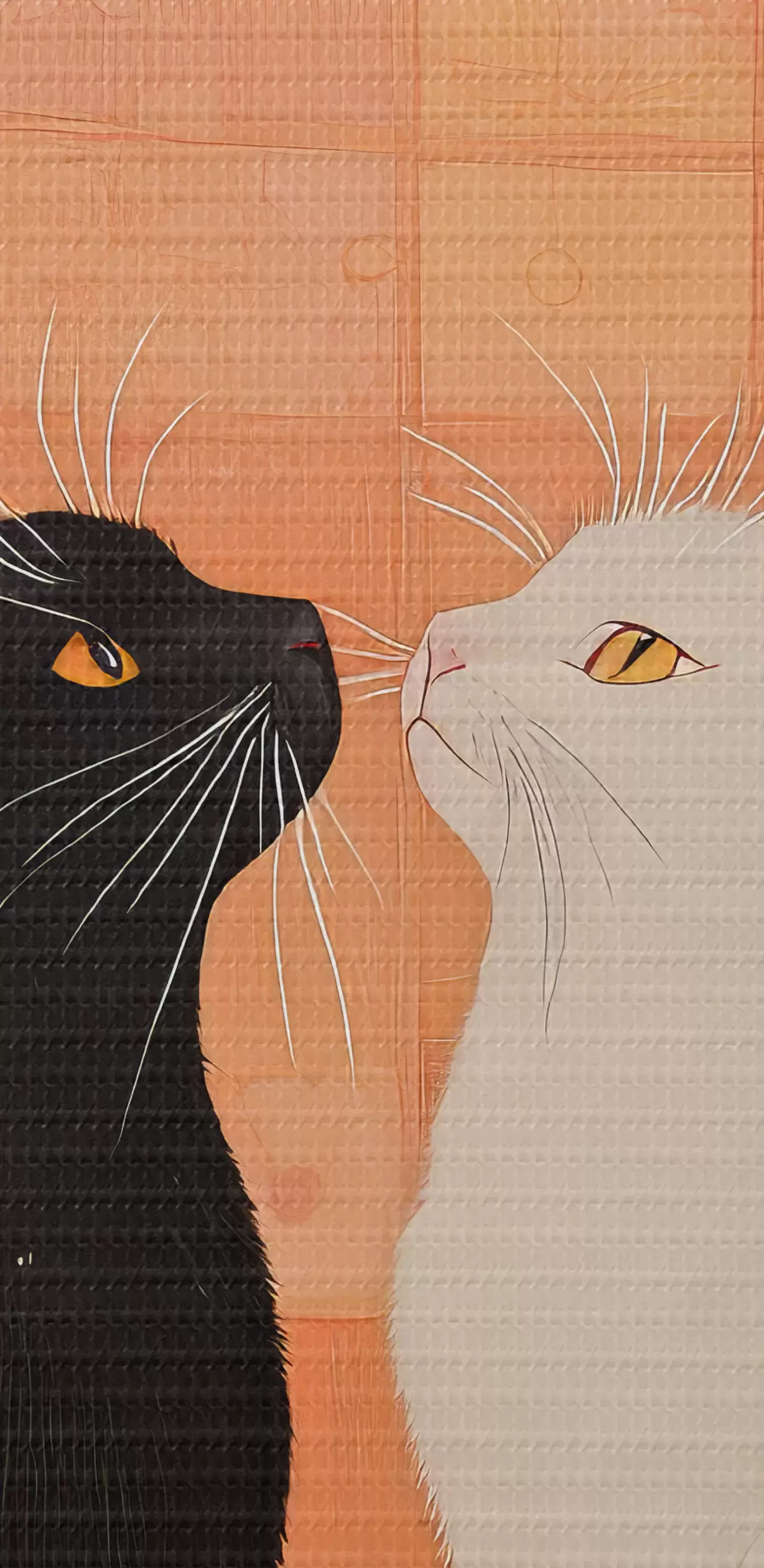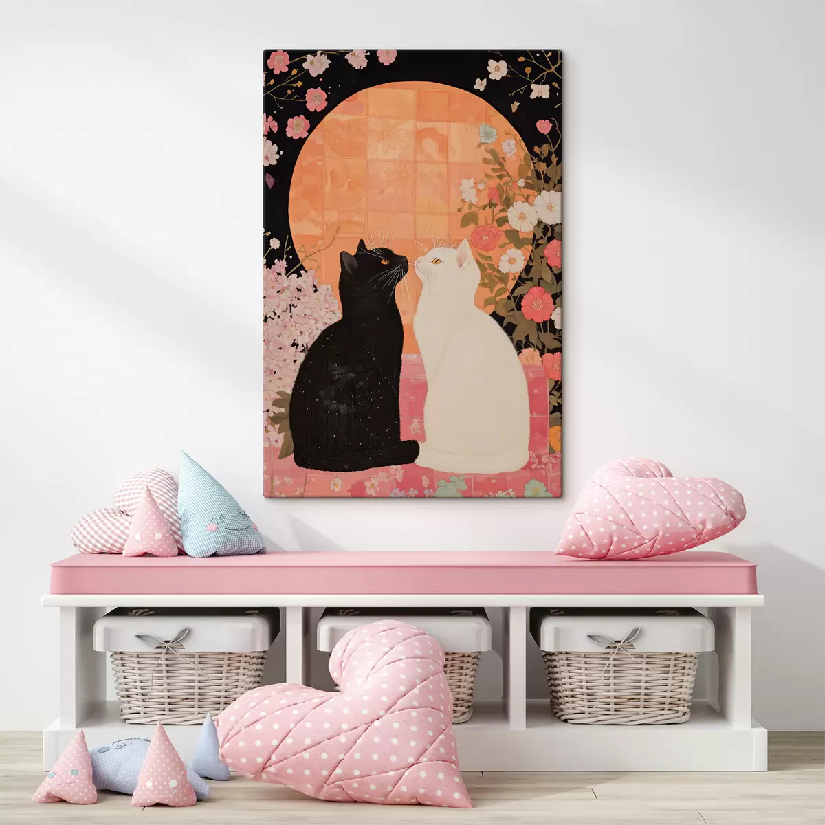 Vászonkép Fekete és fehér macska aranyosan néznek egymásra naplementekor Nr s40669