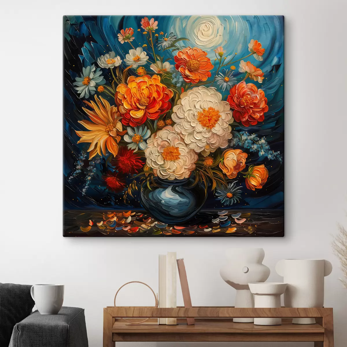 Vászonkép Van Gogh stílusú vázában elhelyezett virágkompozíció Nr s40671