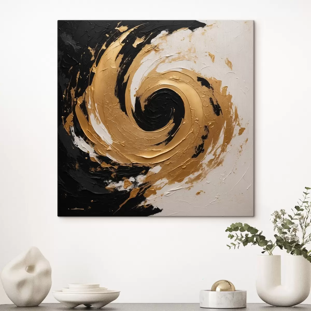 Vászonkép Absztrakt olajfestmény fekete pezsgőfürdővel Nr s40864