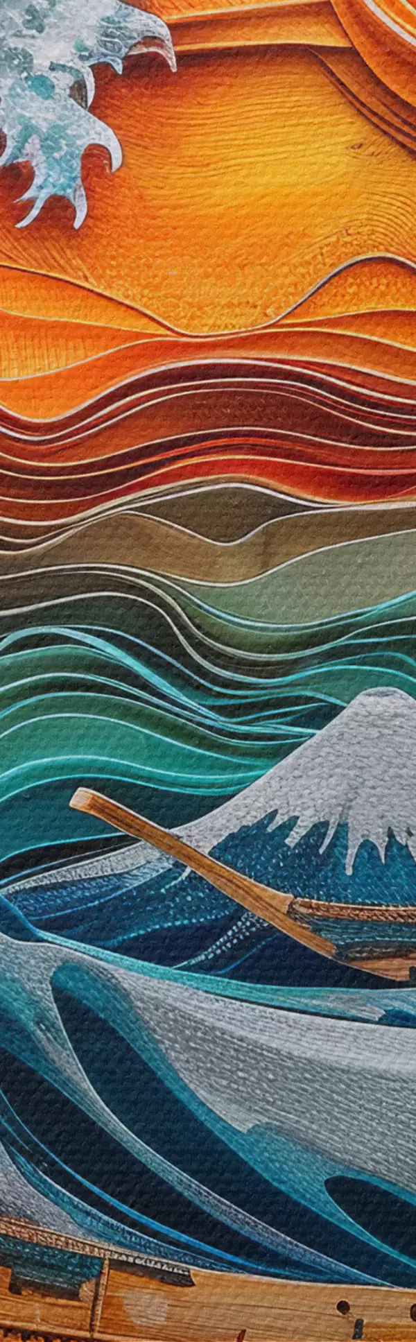 Vászonkép Dombormű-utánzat: tomboló óceán csónakokkal és a napfénnyel Nr s40976