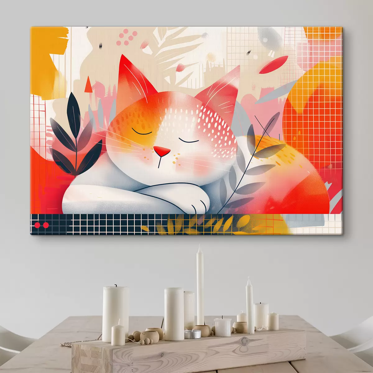 Vászonkép Egy aranyos macska alszik a padlón színes virágok között Nr s40981