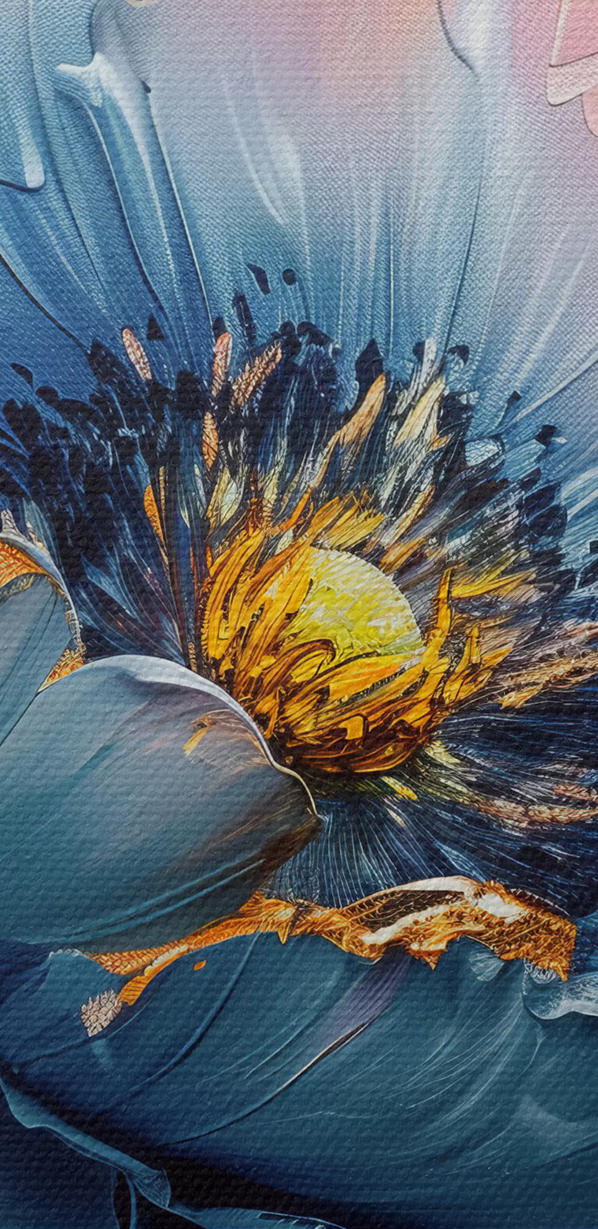 Vászonkép Egy nagy virág finom színekben, merész olaj ecsetvonásokkal Nr s40991