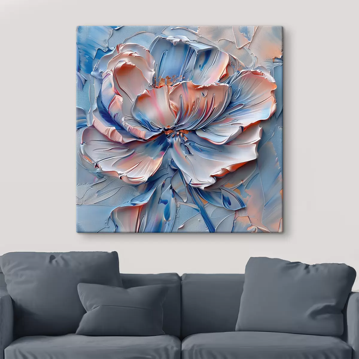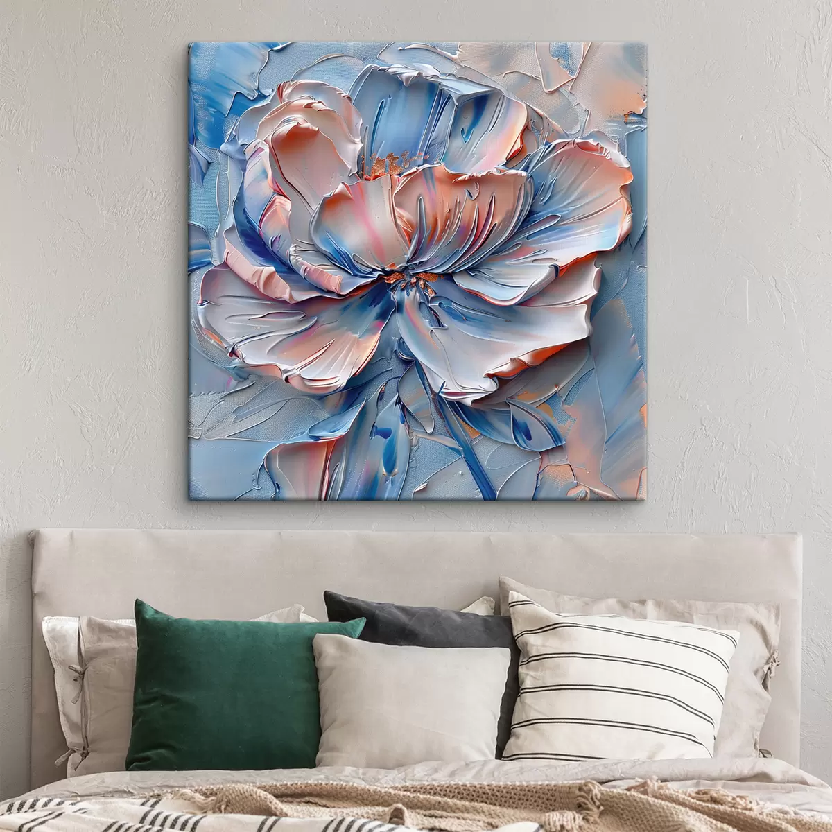 Vászonkép Nagy virág merész ecsetvonásokkal kék és barack színekben Nr s41004