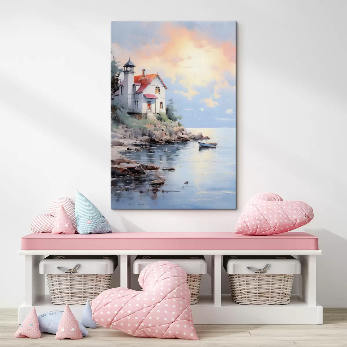Vászonkép Ház a tengerparton a tengerparton naplementében Nr s41010