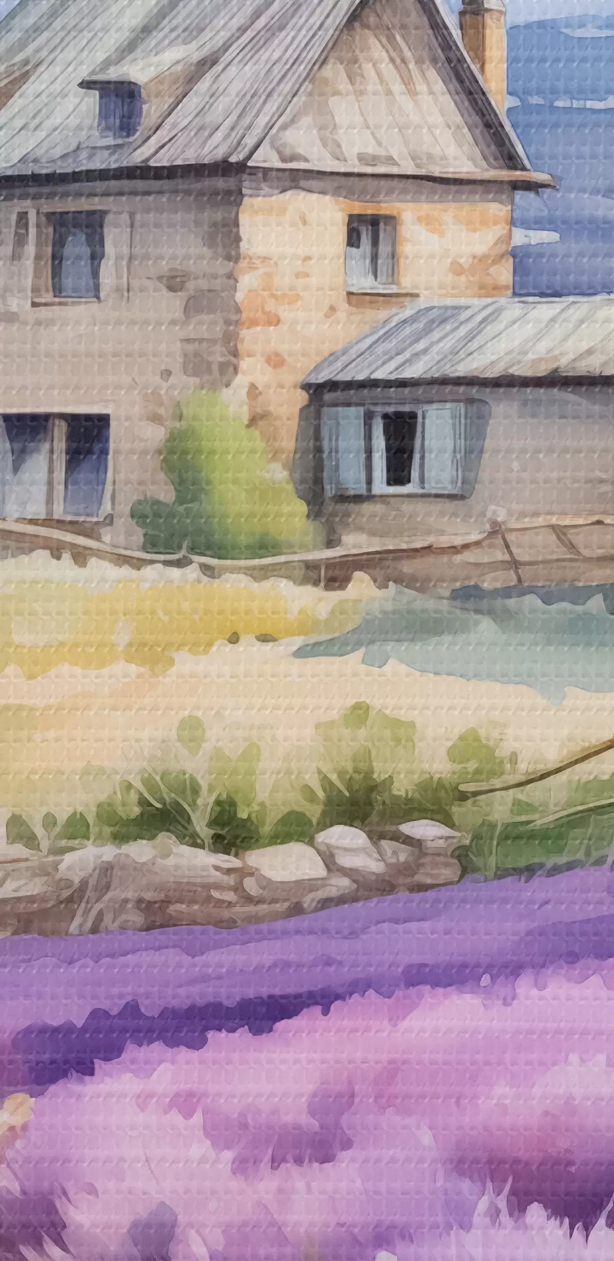 Vászonkép Vidéki ház hegyekkel a háttérben levendulamező közelében Nr s41012