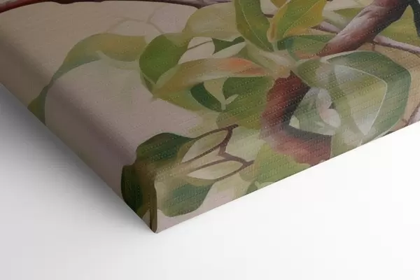 Vászonkép Papagáj ül egy ágon rózsaszín virággal Nr s41018