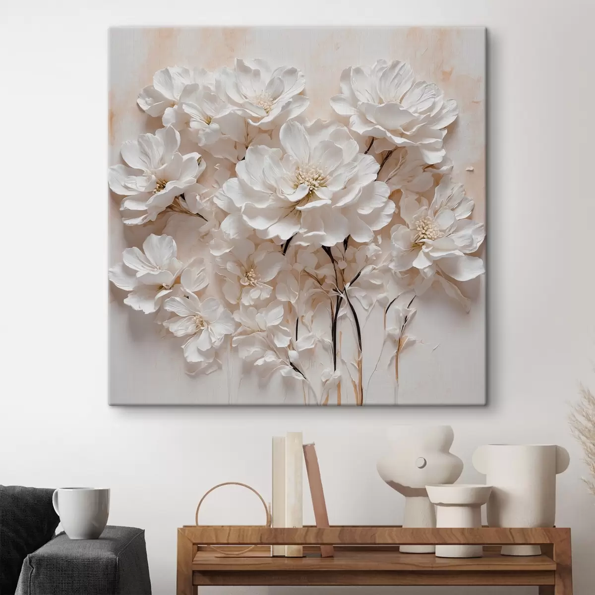 Vászonkép Fehér virágok fehér-narancs háttéren Nr s41042