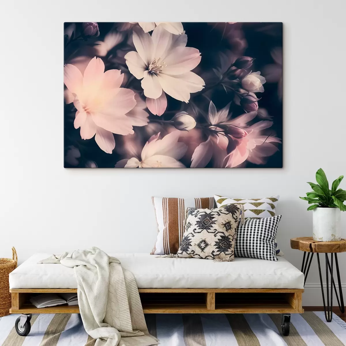 Vászonkép Lágy rózsaszín és fehér vintage könnyű virágok elmosódott háttérrel Nr s41084